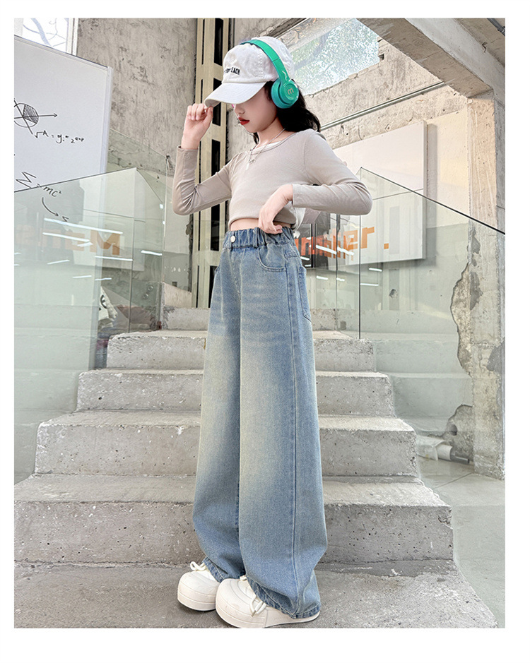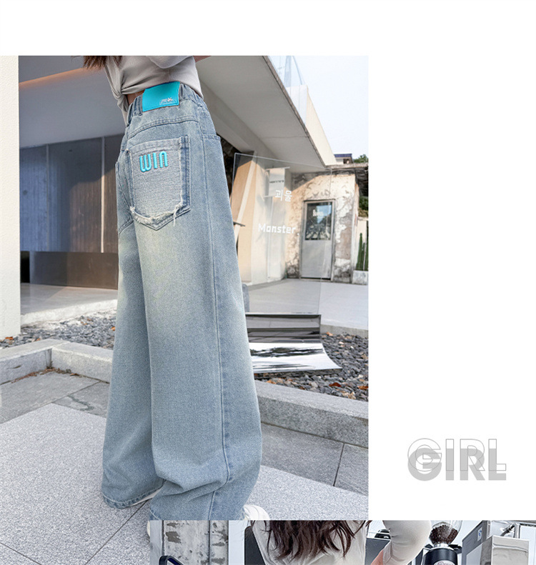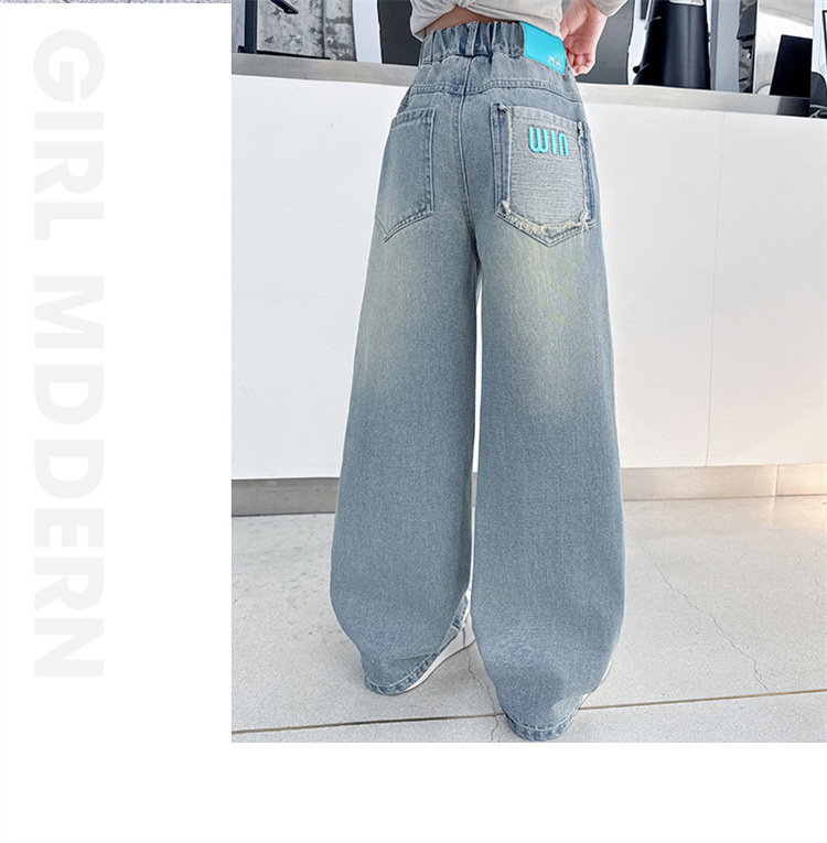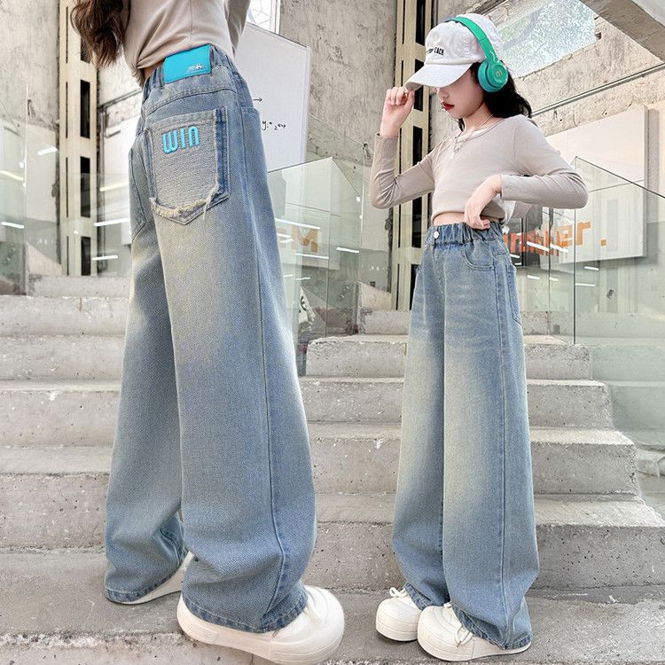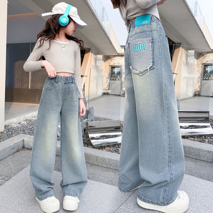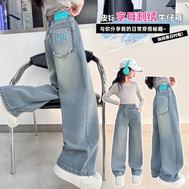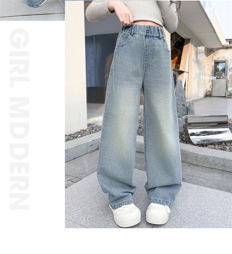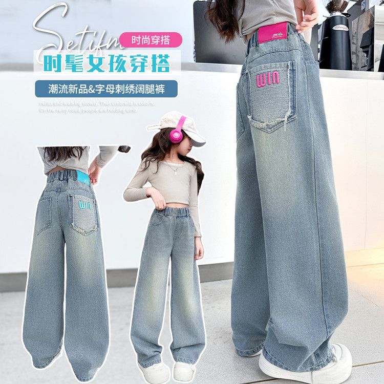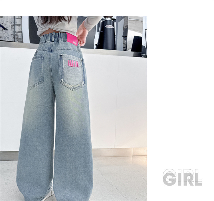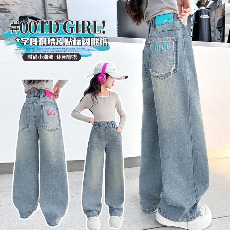 여아 바지 2025 새로운 중대형 아동 청바지 다용도 루즈 캐주얼 여름 와이드 팬츠 아동 스트레이트 팬츠스토어 가기