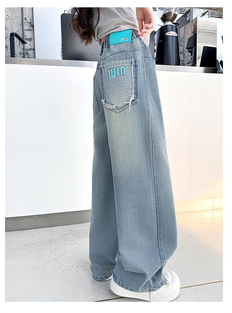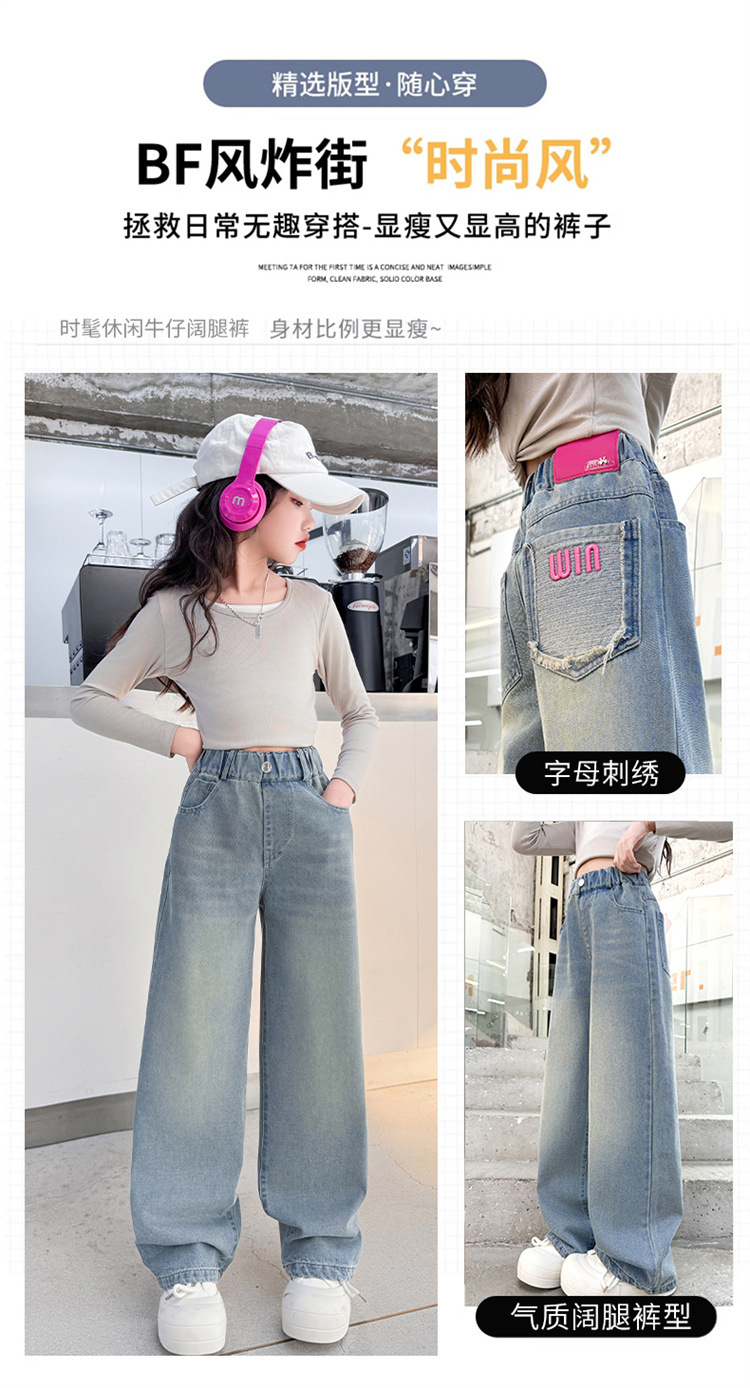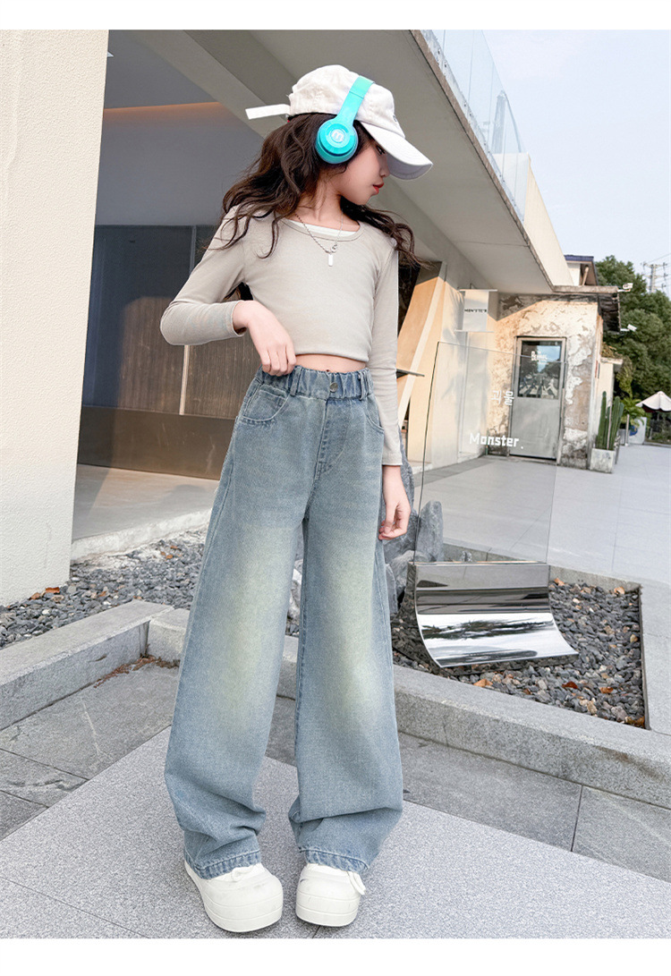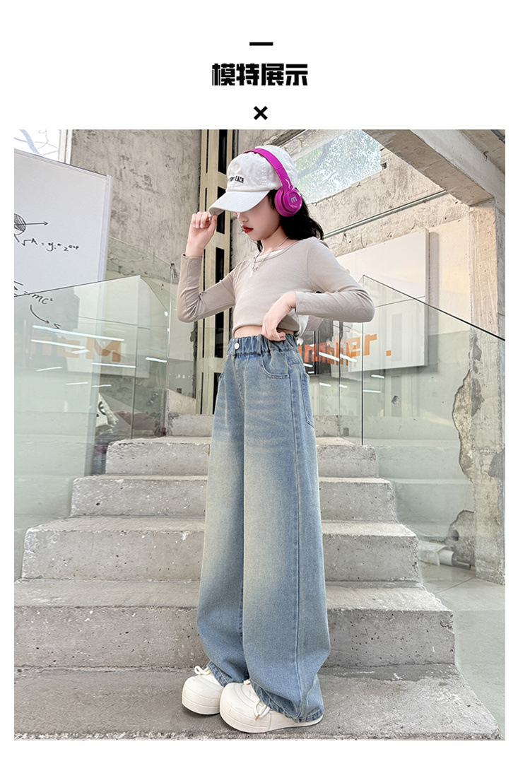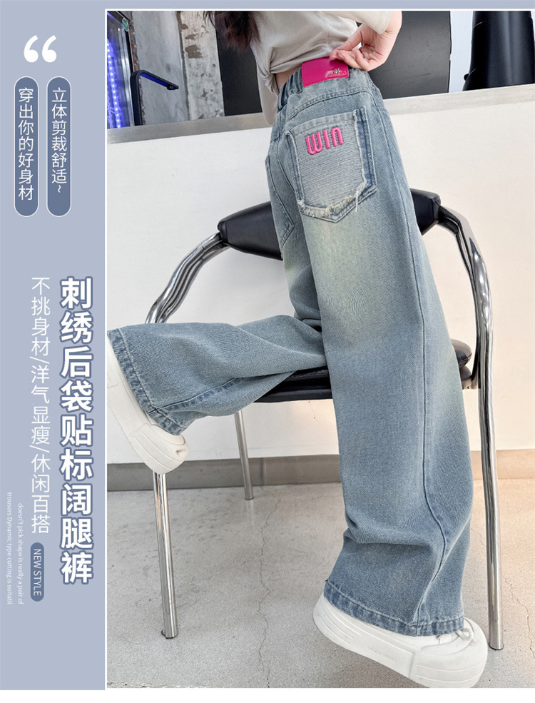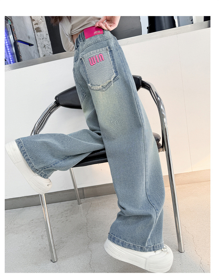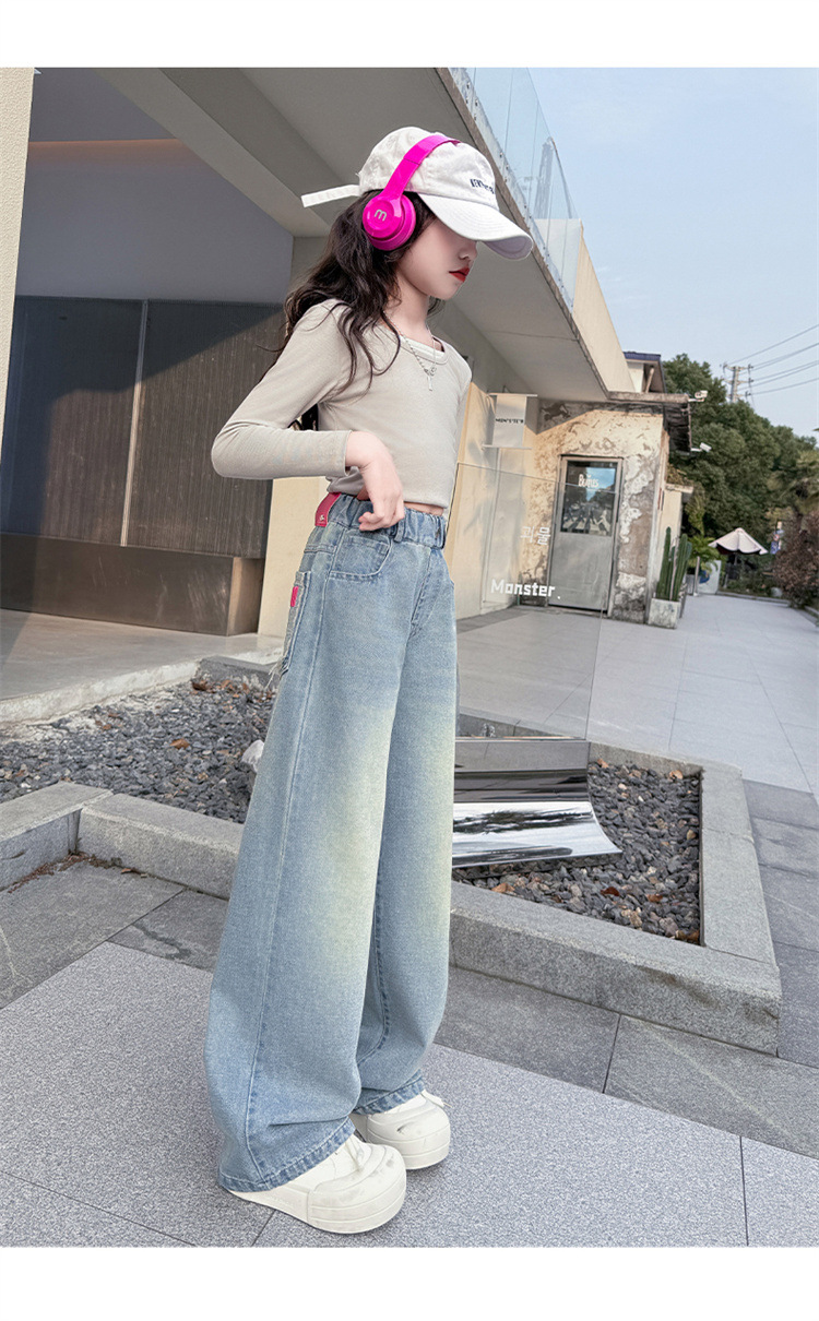 여아 바지 2025 새로운 중대형 아동 청바지 다용도 루즈 캐주얼 여름 와이드 팬츠 아동 스트레이트 팬츠스토어 가기