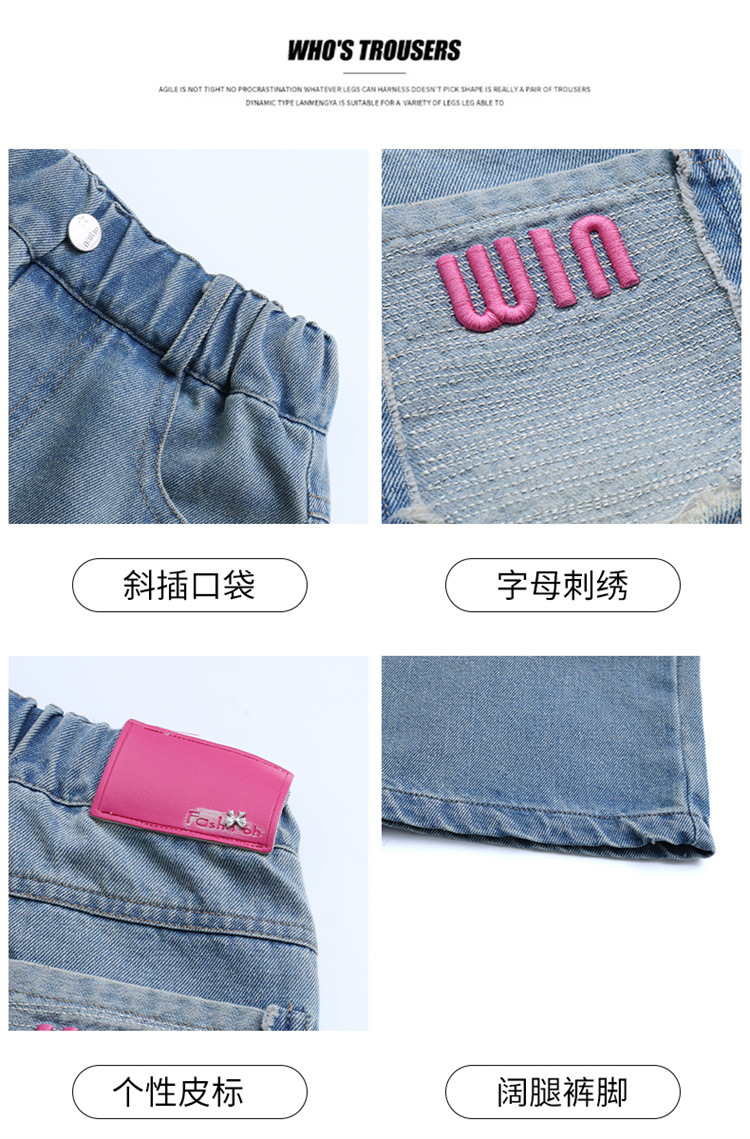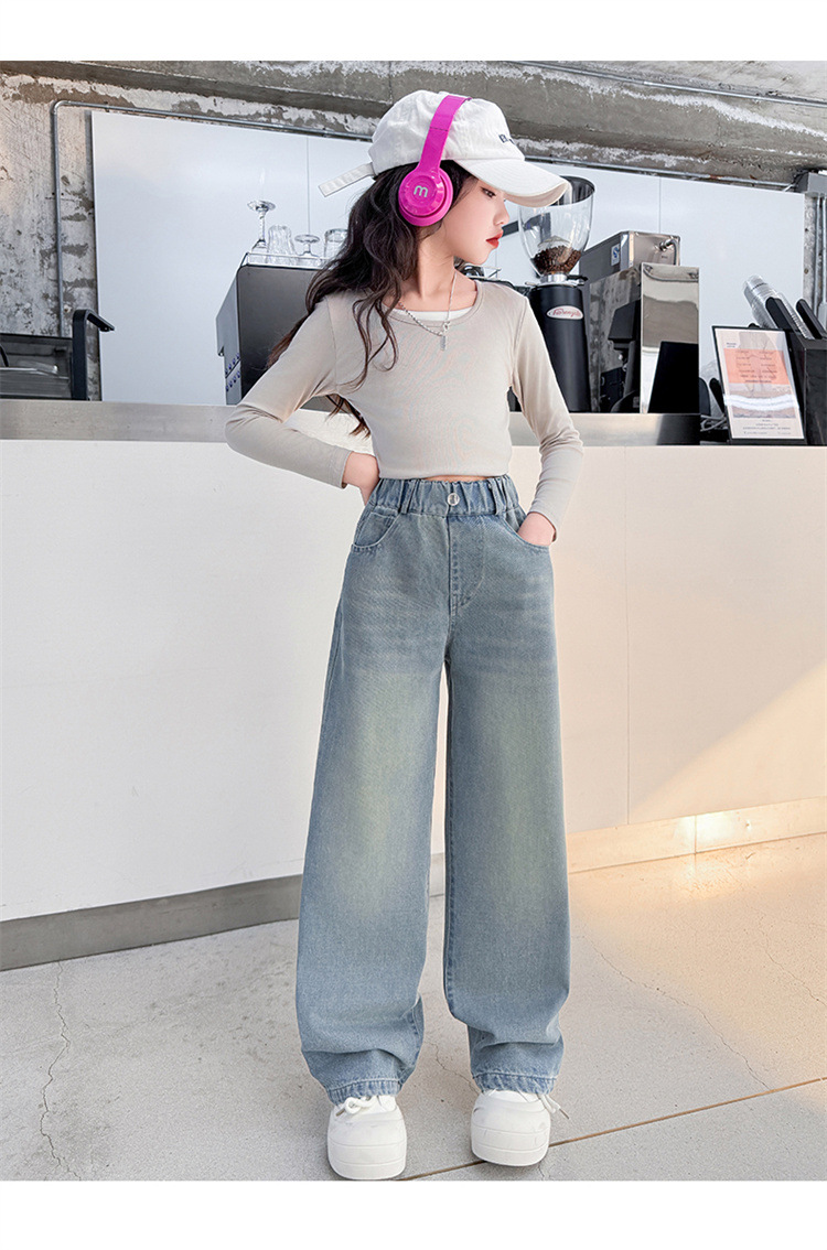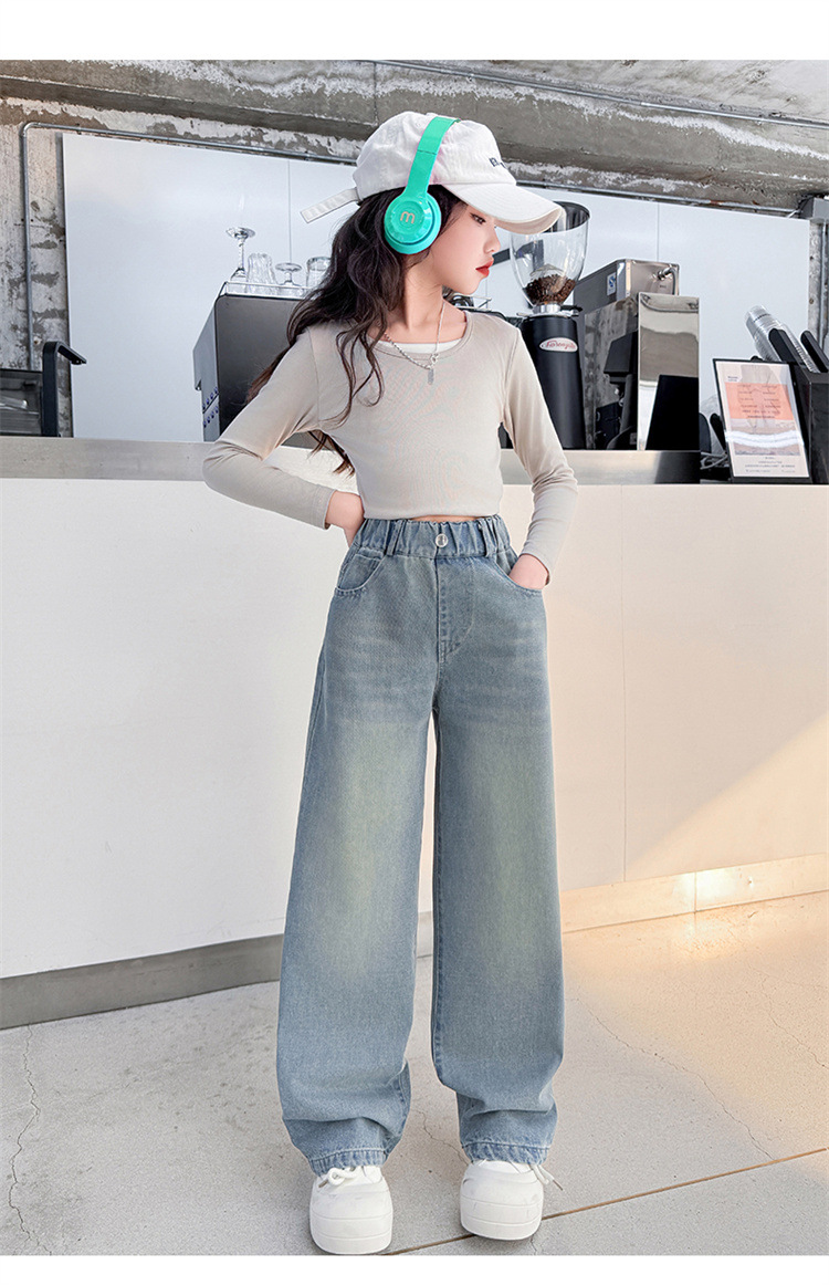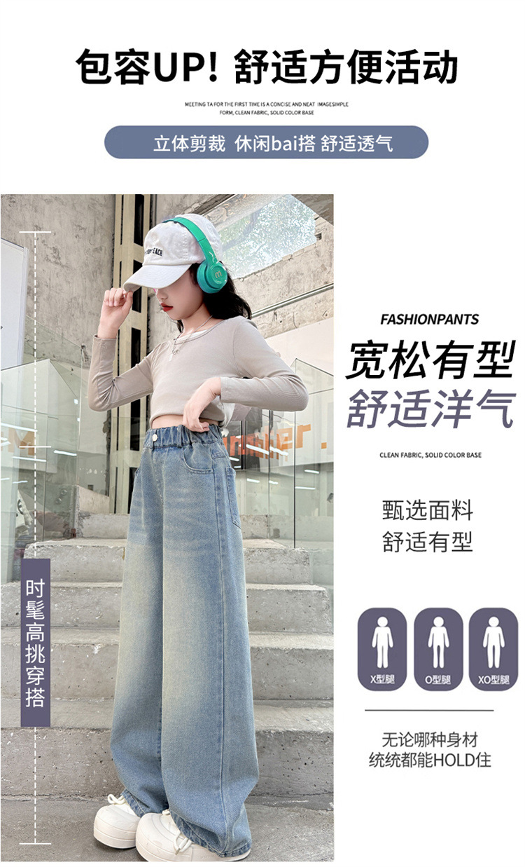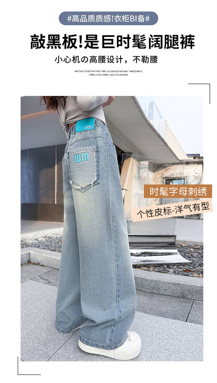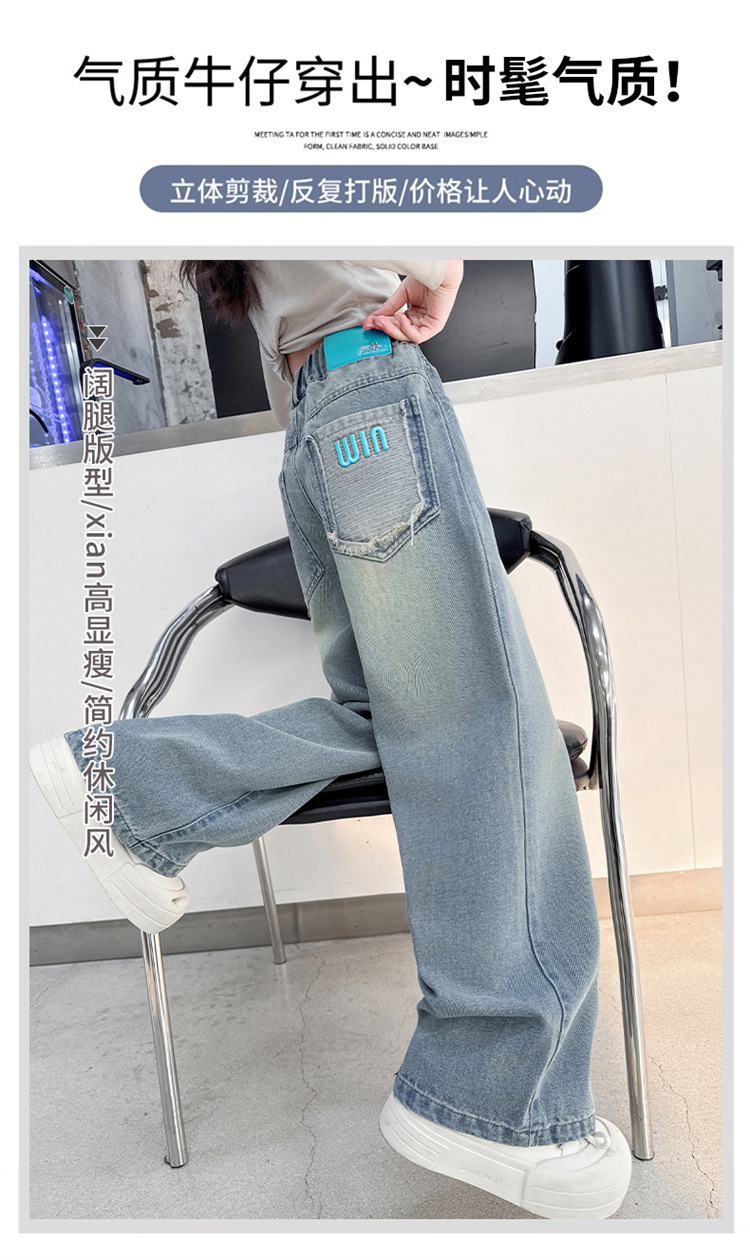 여아 바지 2025 새로운 중대형 아동 청바지 다용도 루즈 캐주얼 여름 와이드 팬츠 아동 스트레이트 팬츠스토어 가기