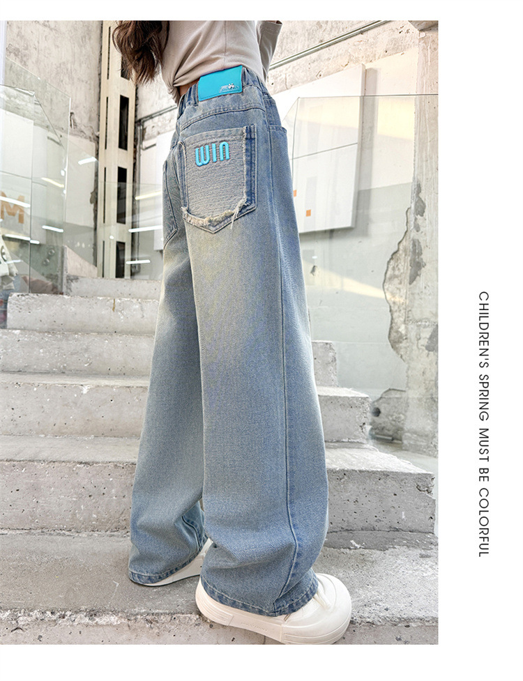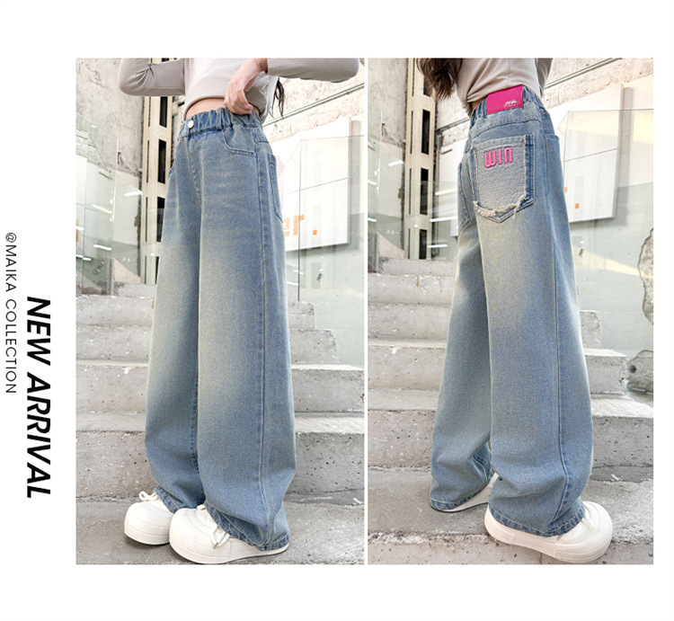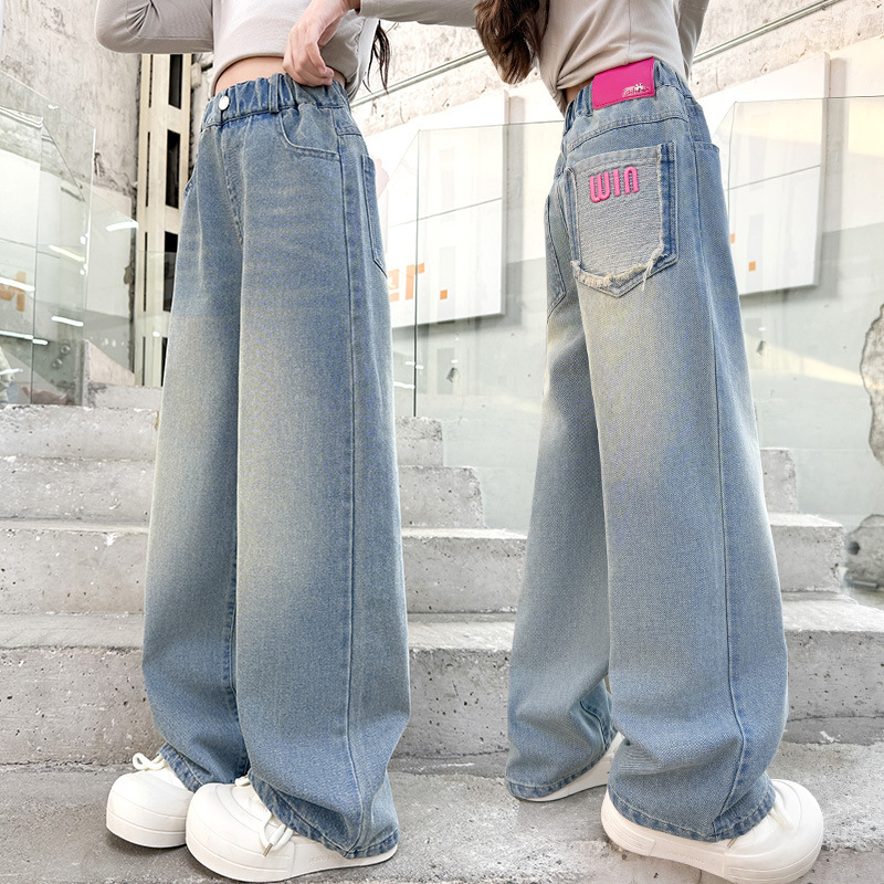 여아 바지 2025 새로운 중대형 아동 청바지 다용도 루즈 캐주얼 여름 와이드 팬츠 아동 스트레이트 팬츠