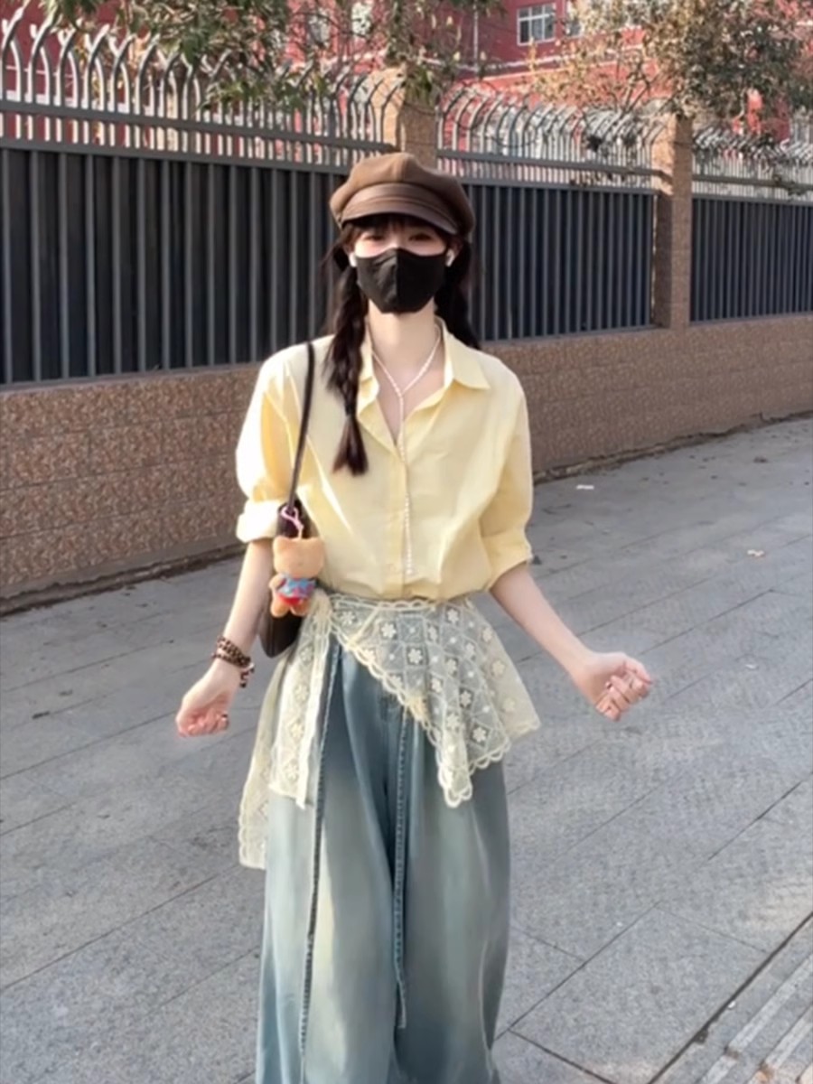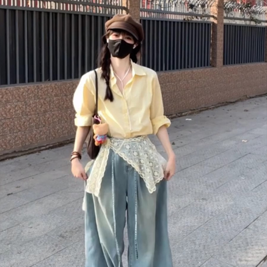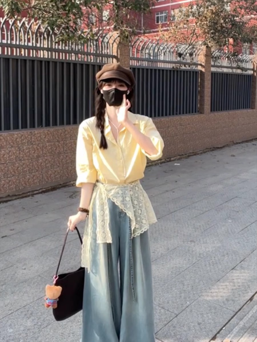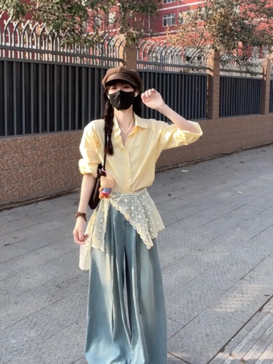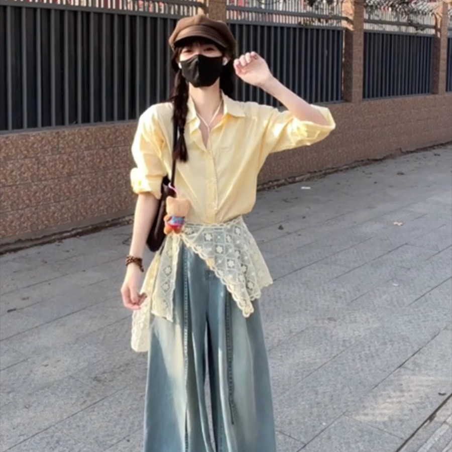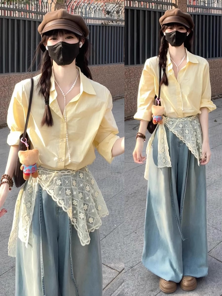 • 레이스 셔츠+청바지 [투피스세트]