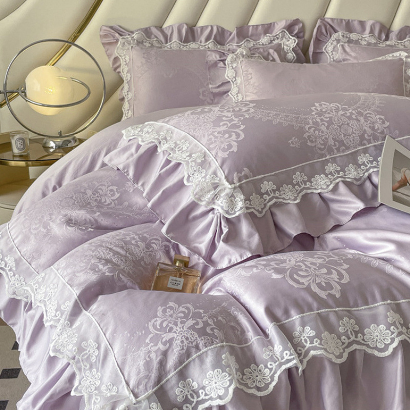 60S 하이 엔드 여름 클래스 A 텐셀 4 피스 세트 세척 실크 아이스 실크 침대 시트 퀼트 커버 침구 인터넷 레드
