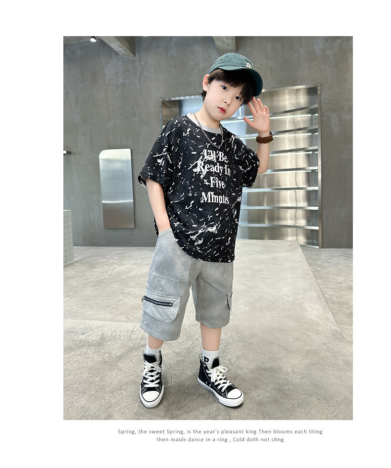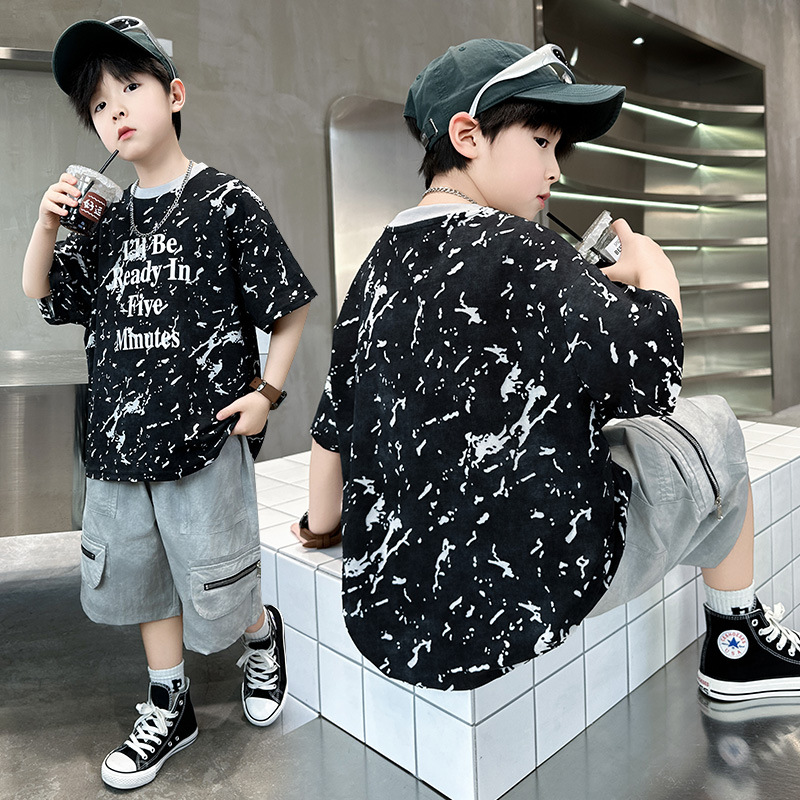 소년 여름 세트 잘 생긴 유행 어린이 여름 반팔 2025 뉴 중형 및 대형 어린이 여름 투피스 유행 세트