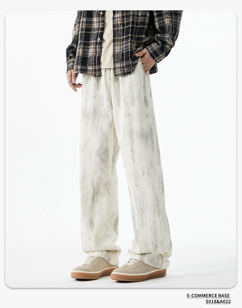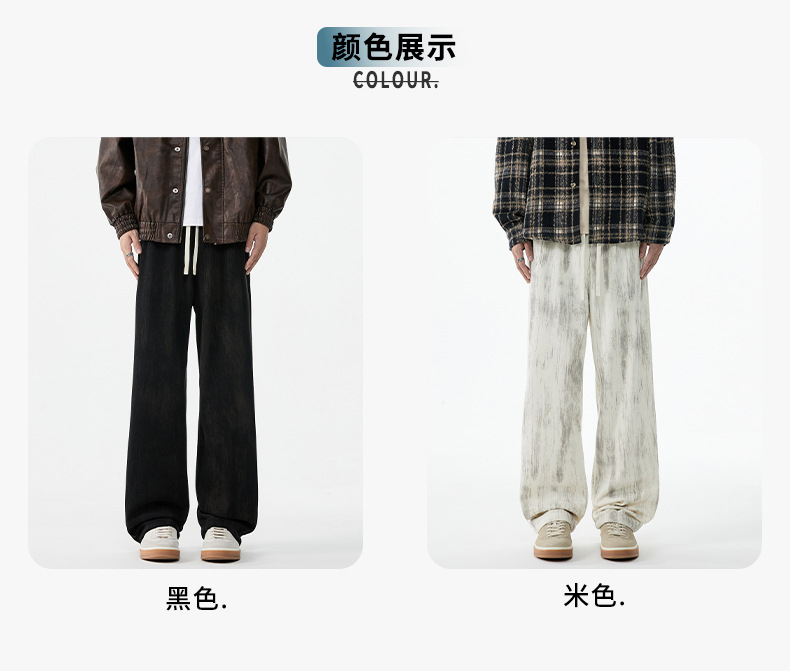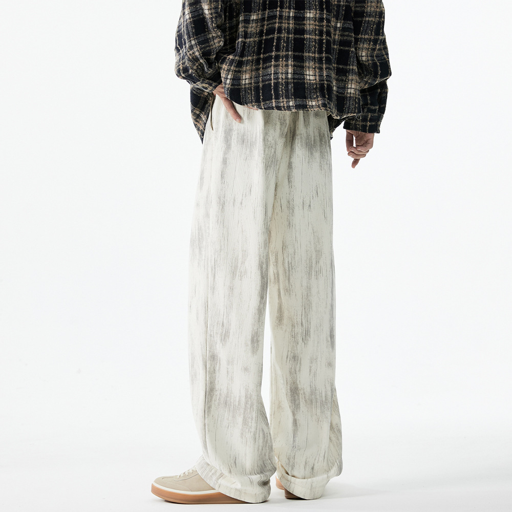 무료 배송 2025 봄 새로운 캐주얼 바지 남성용 아메리칸 스타일 레트로 타이-다이 트렌디 브랜드 스트레이트 바지 넓은 다리 긴 새그스토어 가기