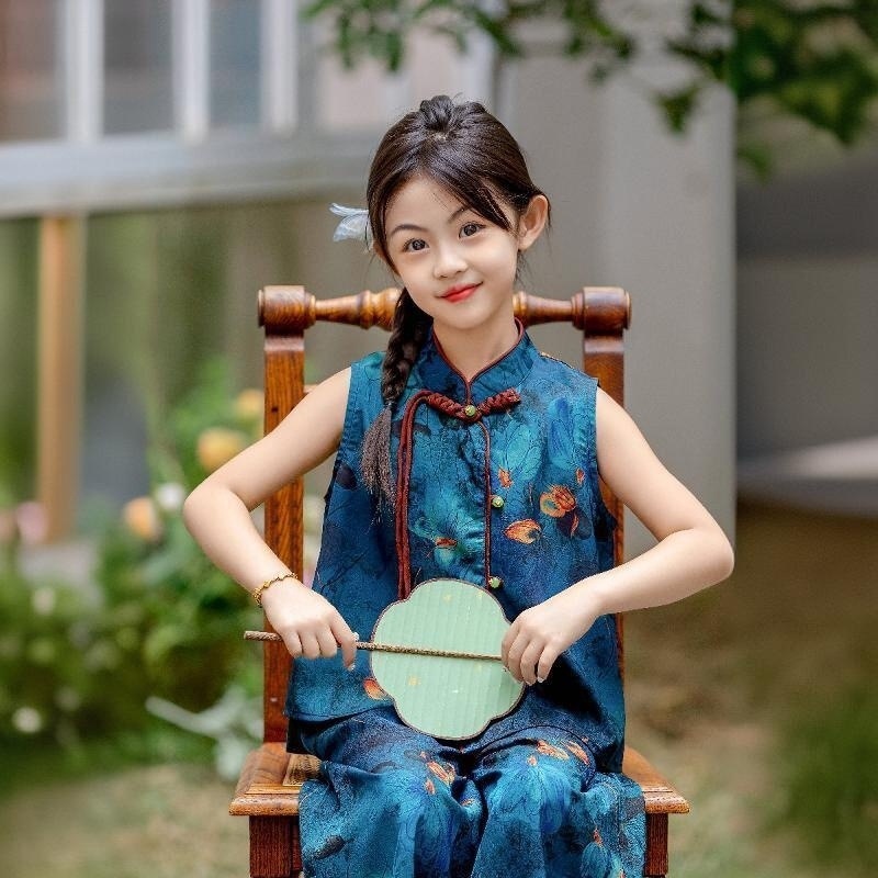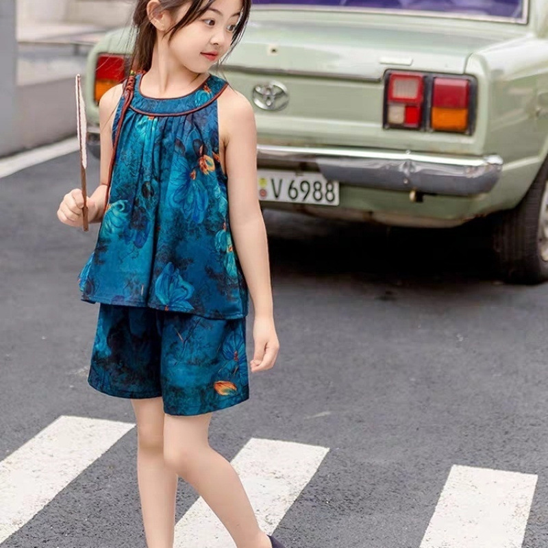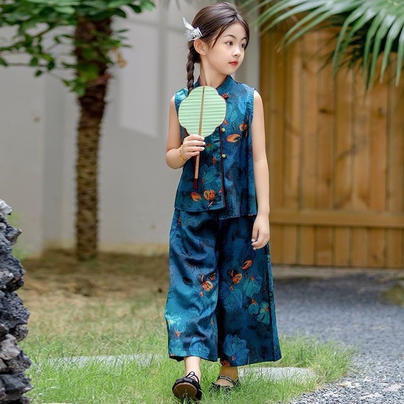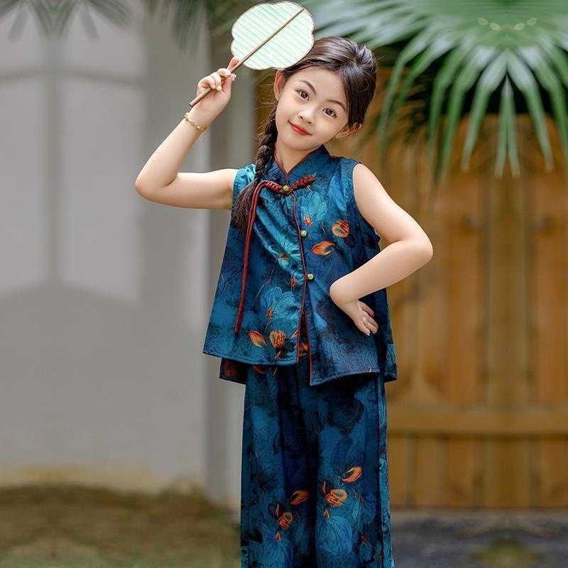 [1096명] 새로운 중국 스타일 Hanfu 소녀 정장 2025 새로운 여름 복고풍 중국 스타일 꽃 무늬 민소매