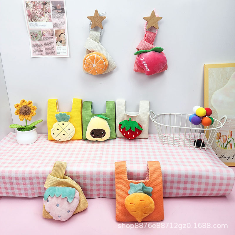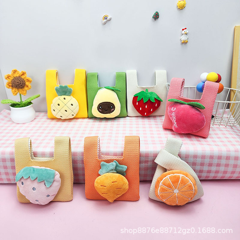 새로운 국경 신선한 과일 시리즈 니트 동전 지갑 보관 가방 이어폰 가방 어린이 귀여운 펜던트 작은 학교 가방스토어 가기