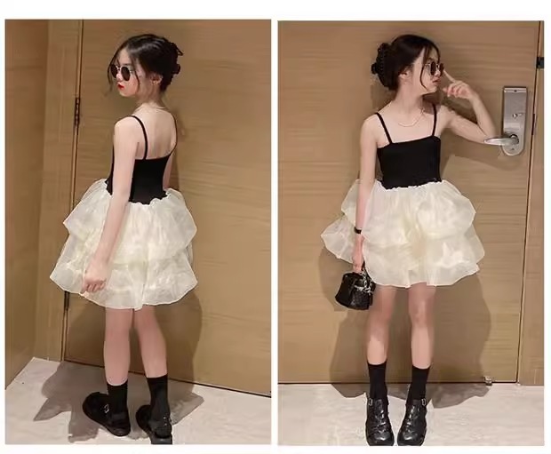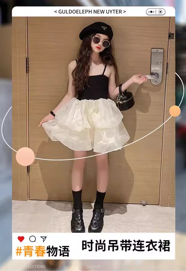 여자 여름 원피스 2022 새로운 어린이 공주 원피스 여름 어린이 베일 원피스 여름 스트랩 원피스 유행스토어 가기