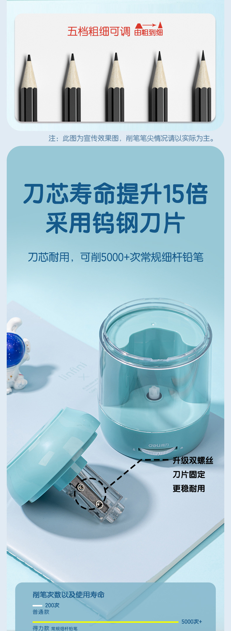 델리 전기 연필 깎이 업그레이드 텅스텐 스틸 블레이드 연필 깎이 배터리 전원 연필 깎이 대형 구경 연필 깎이