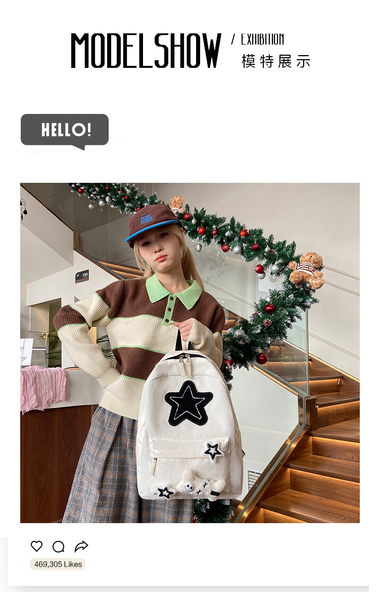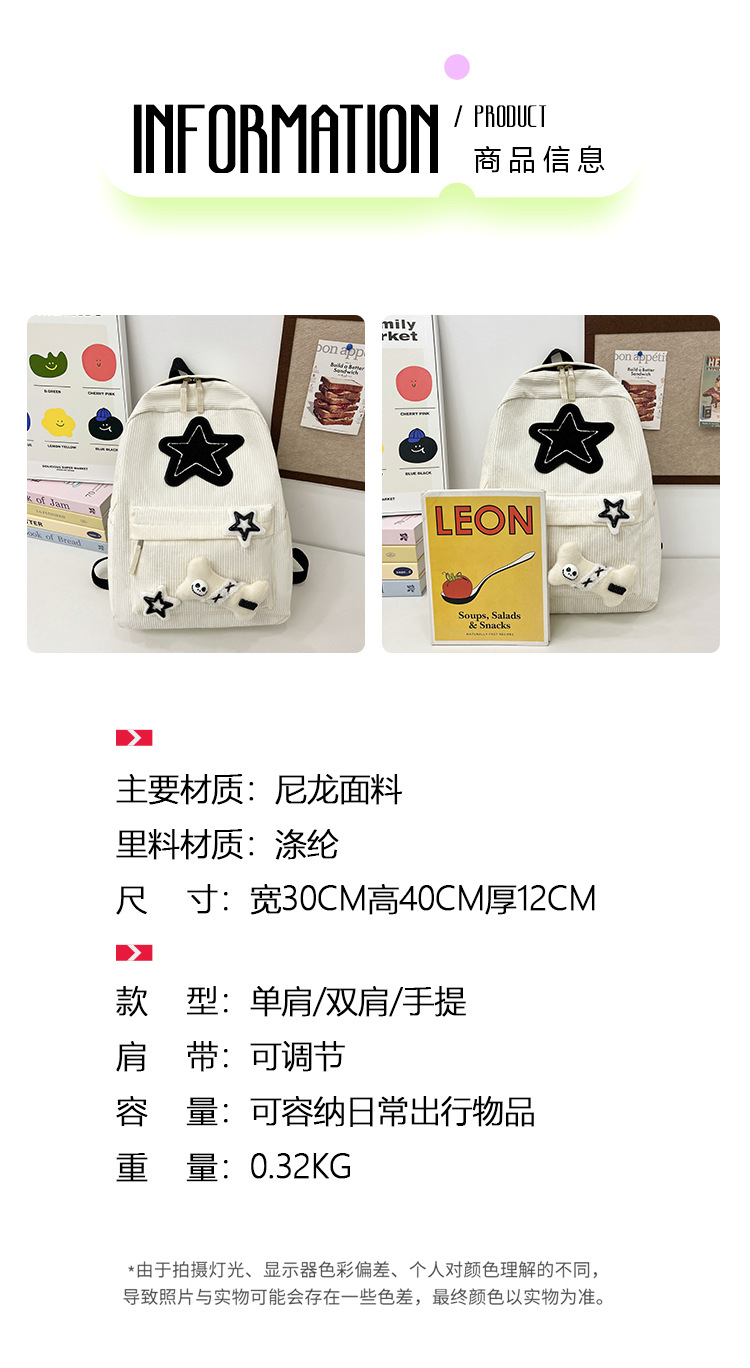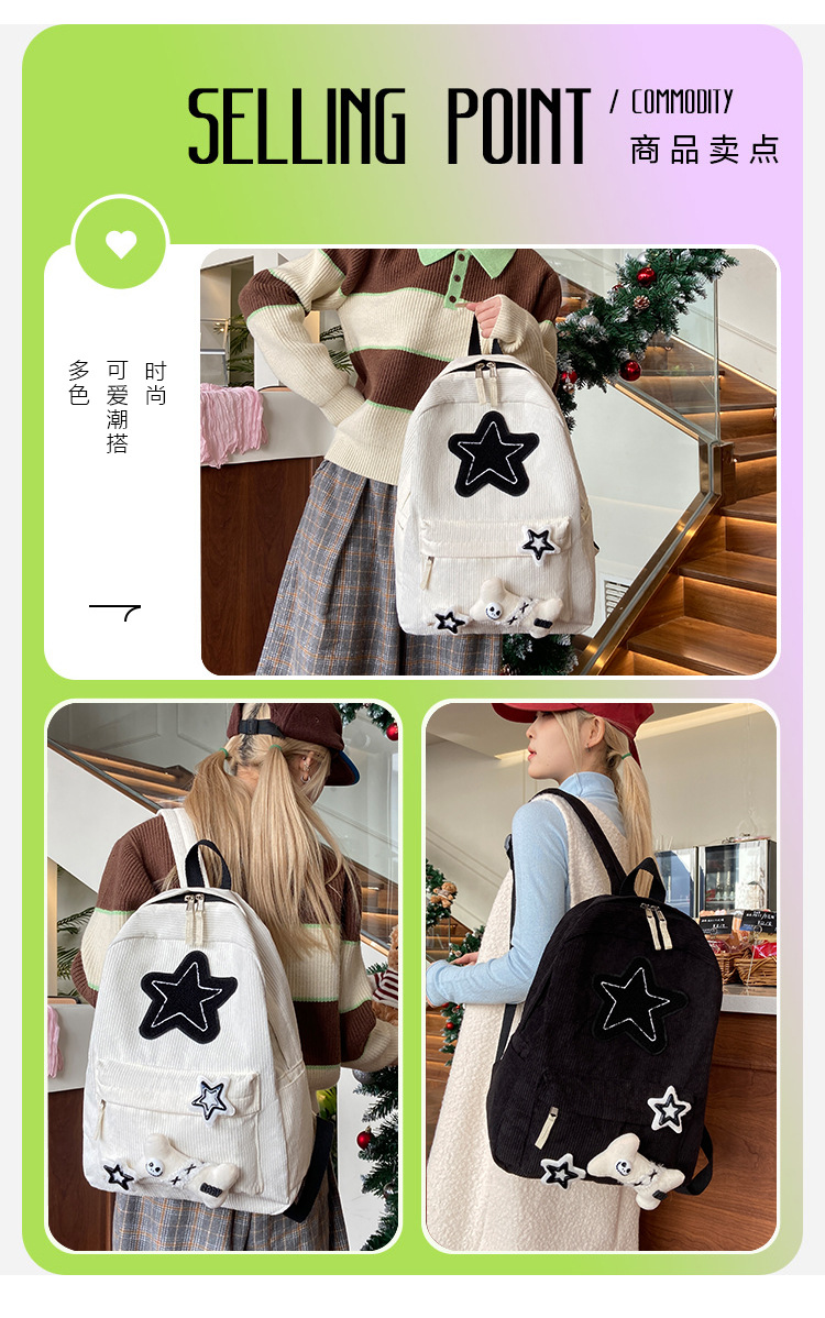 초등학생을위한 스타 스쿨백 여성 일본 스타일 Induroy 대용량 대학 스타일 배낭 캐주얼 여행 배낭스토어 가기