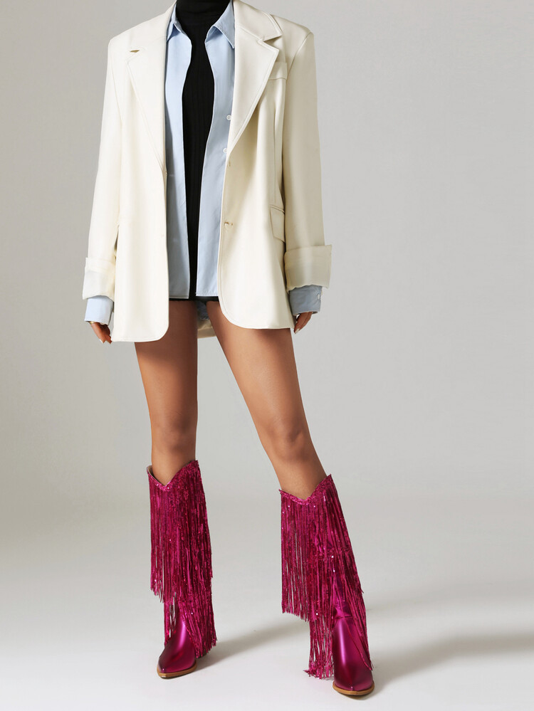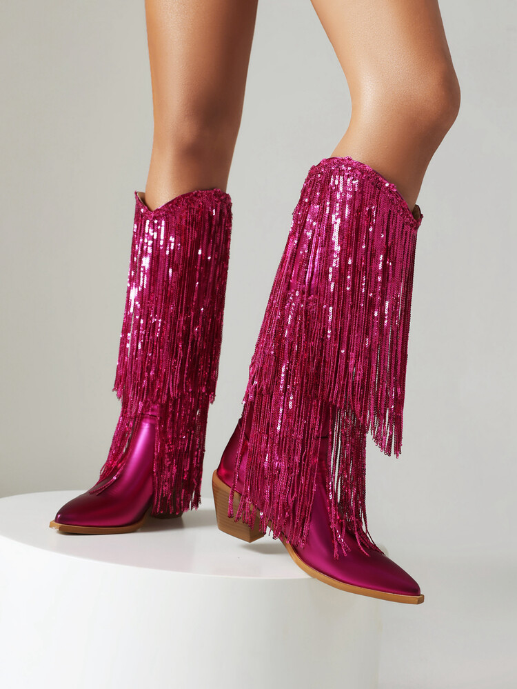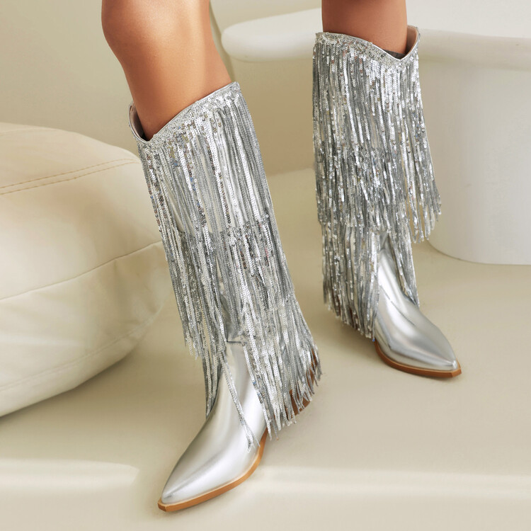 부츠는 Western Tassel 실버 환불되지 않는 파란색으로 환불되지 않음 Red가 환불되지 않는 성인스토어 가기