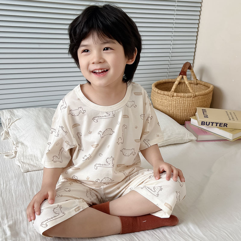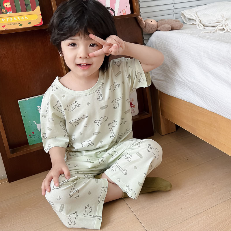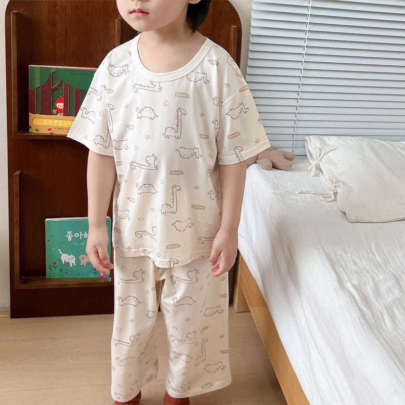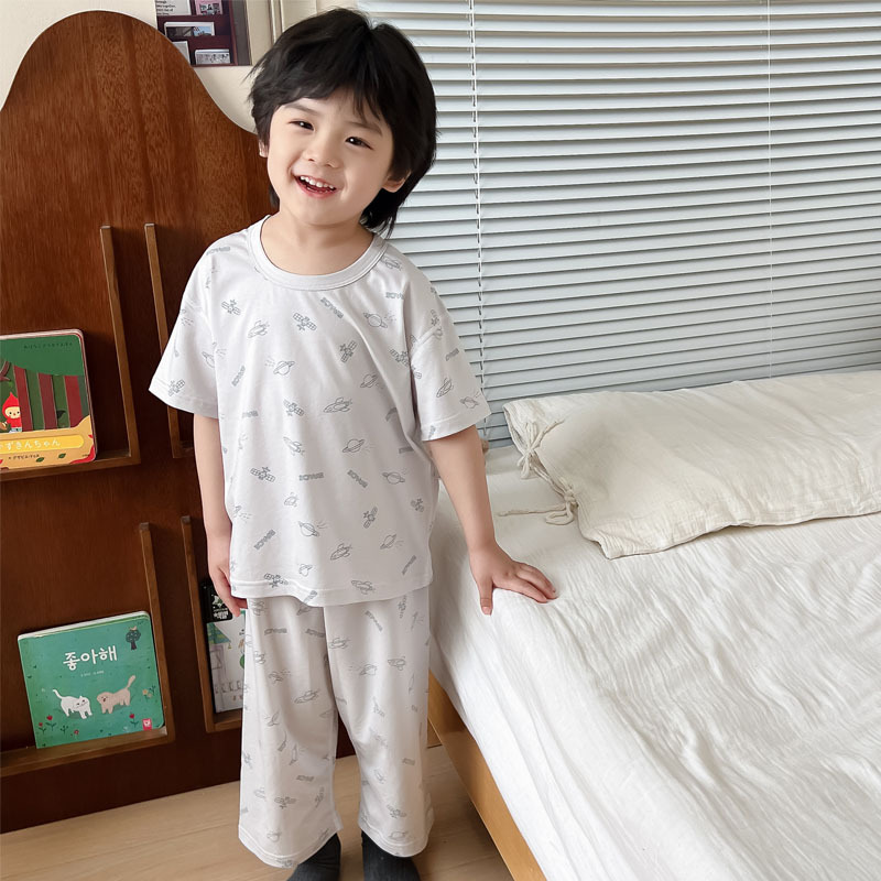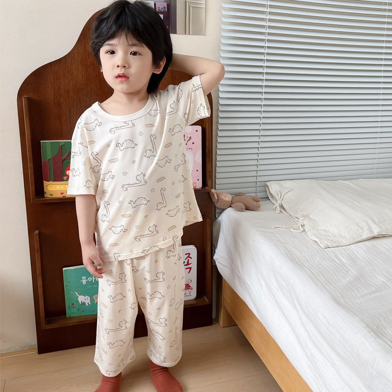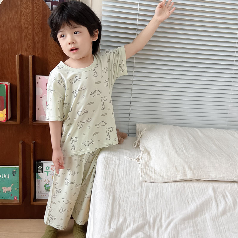 새로운 어린이 가정 옷 여름 얇은 아기 파자마 반팔 자른 바지 Lyocell 쿨 보이즈 에어컨 옷스토어 가기