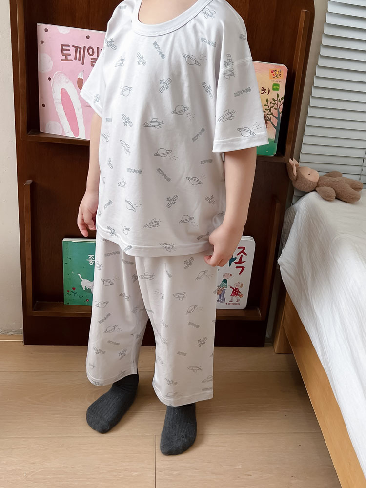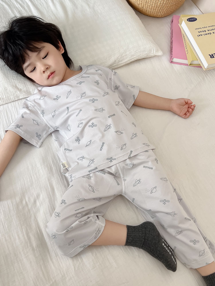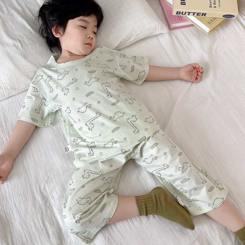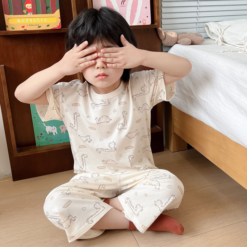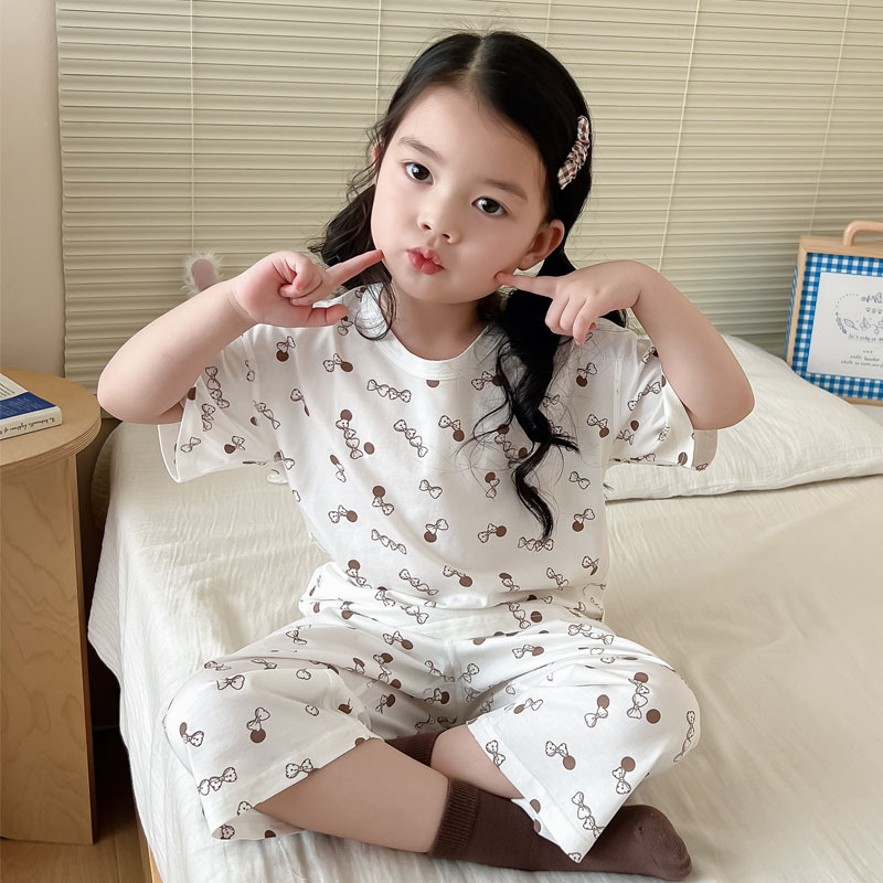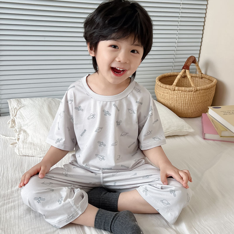 새로운 어린이 가정 옷 여름 얇은 아기 파자마 반팔 자른 바지 Lyocell 쿨 보이즈 에어컨 옷스토어 가기