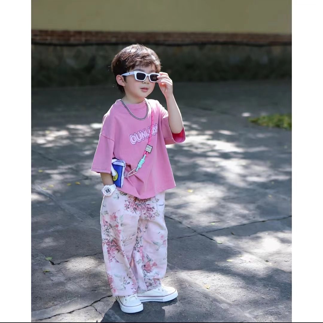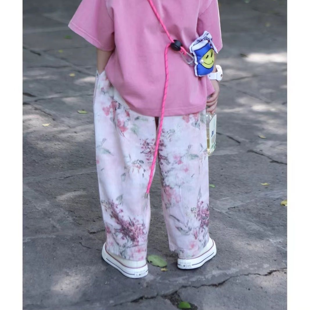 2024 봄 패션 프린트 티셔츠 꽃 바지 투피스 세트 어린이 새로운 트렌드 한국어 버전스토어 가기