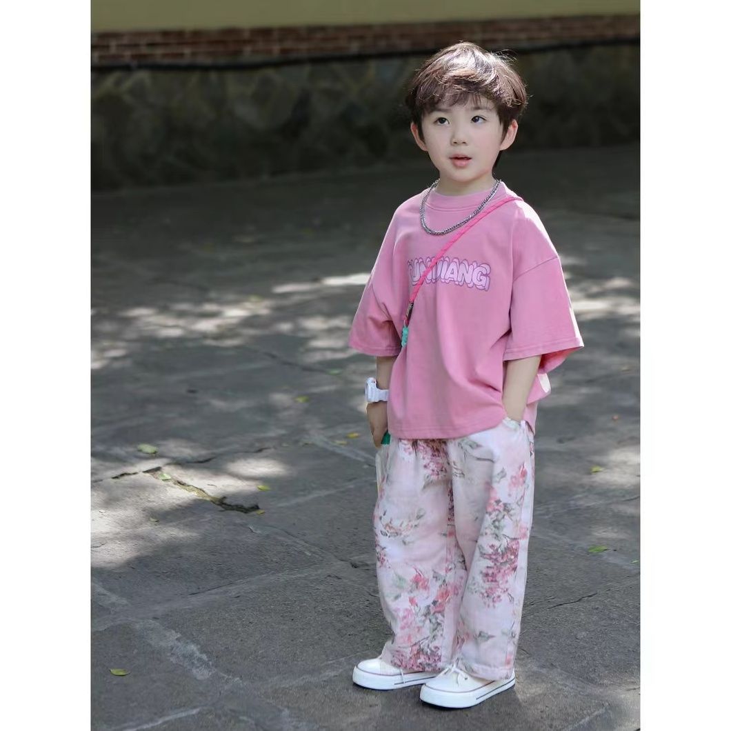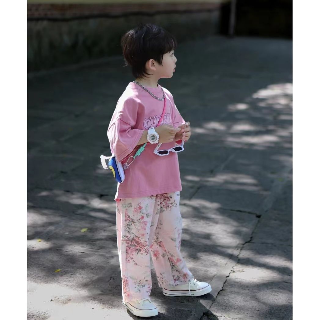 2024 봄 패션 프린트 티셔츠 꽃 바지 투피스 세트 어린이 새로운 트렌드 한국어 버전