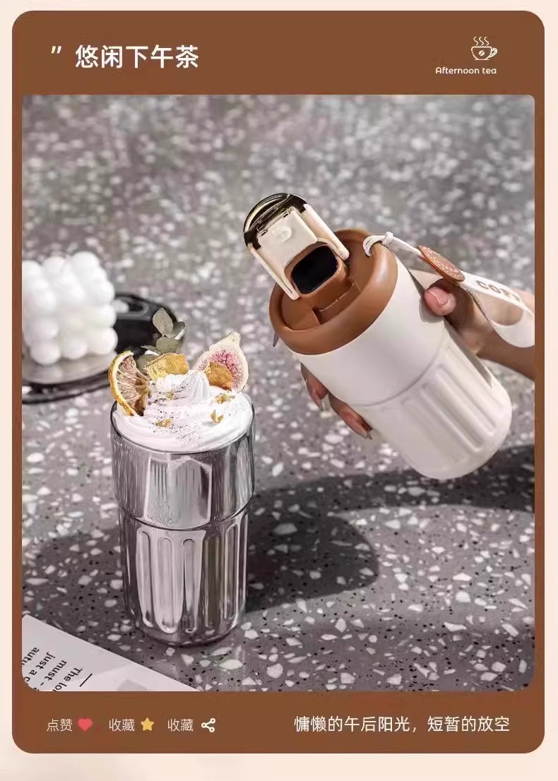 새로운 스타일 간단한 스테인레스 스틸 보온병 컵 홈 오피스 커피 컵 끈 높은 색상 가치 휴대용 손 선물 컵스토어 가기