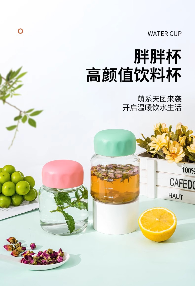 미니 유리 가정용 고온 저항하는 통통한 컵 휴대용 작은 물 컵 흔들리는 컵 우유 커피 컵 두유 컵