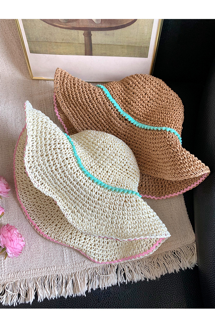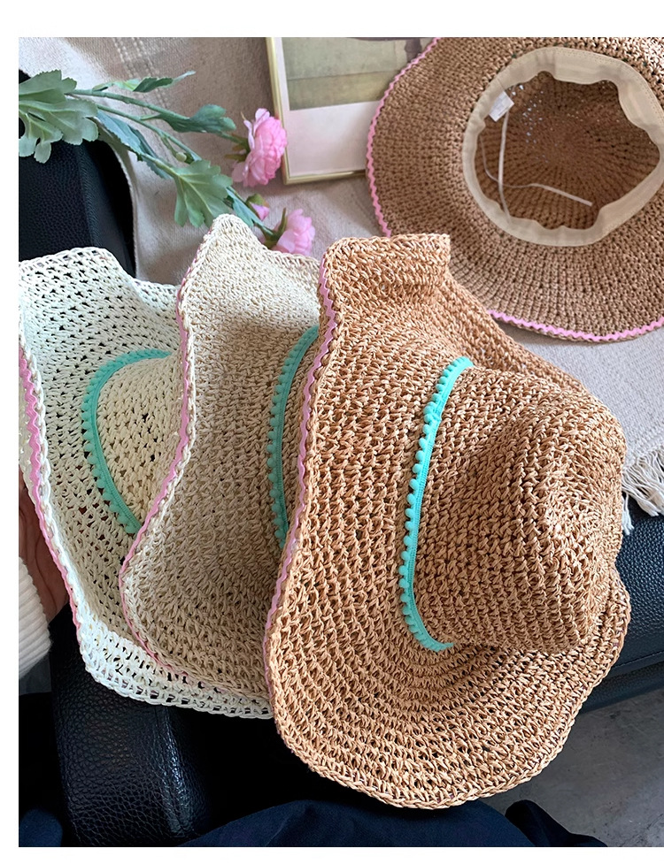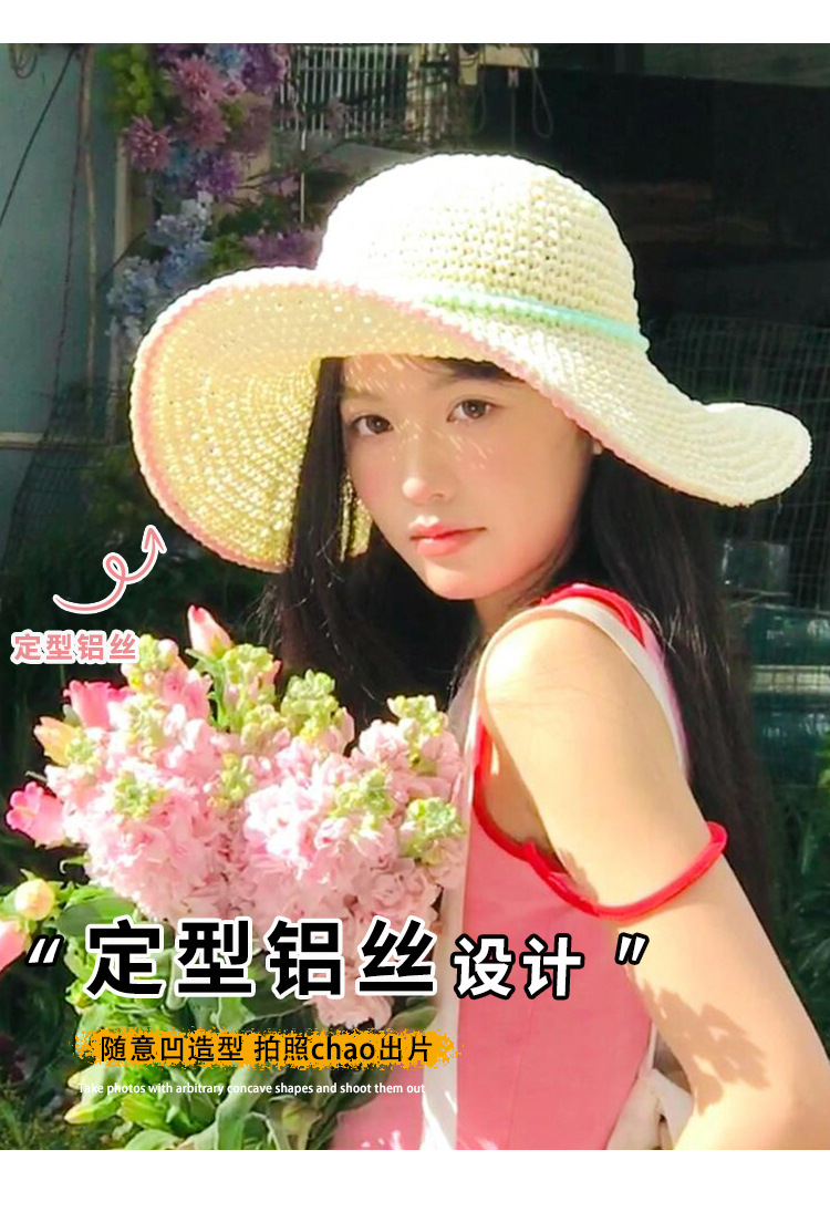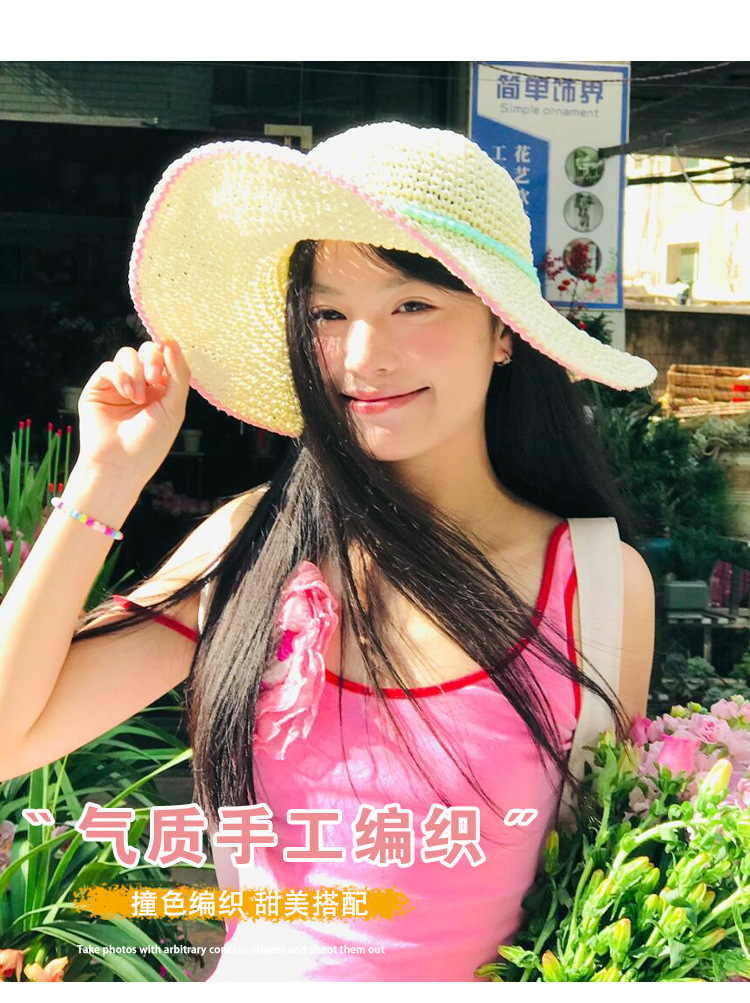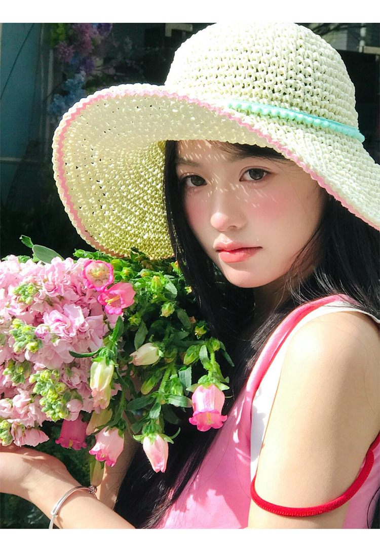 큰 브림 밀짚 모자 여성의 여름 목가적 인 스타일 달콤한 밀짚 어부 모자 해변 햇살스토어 가기