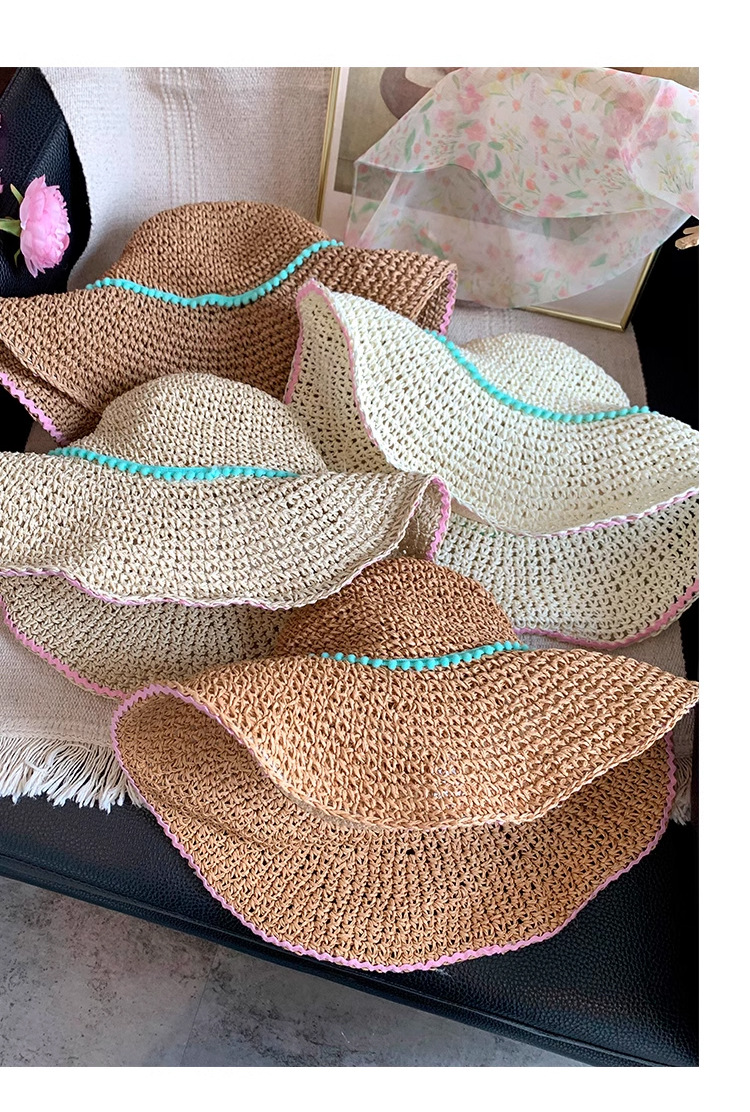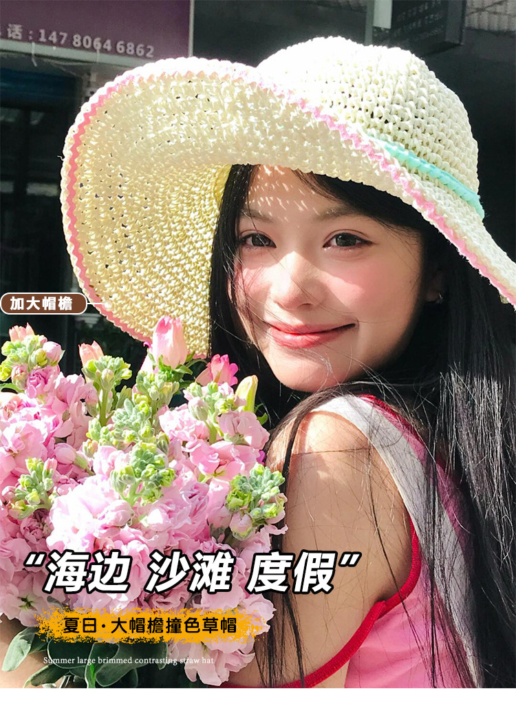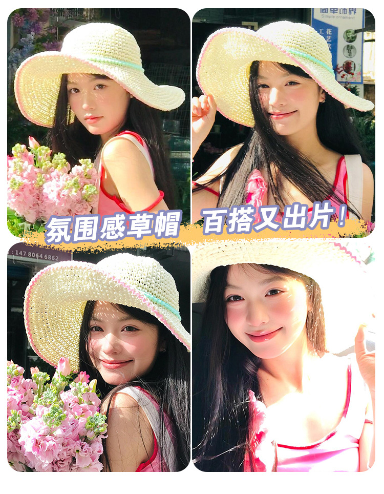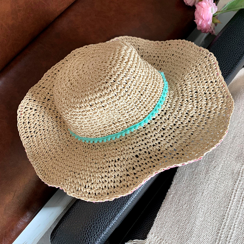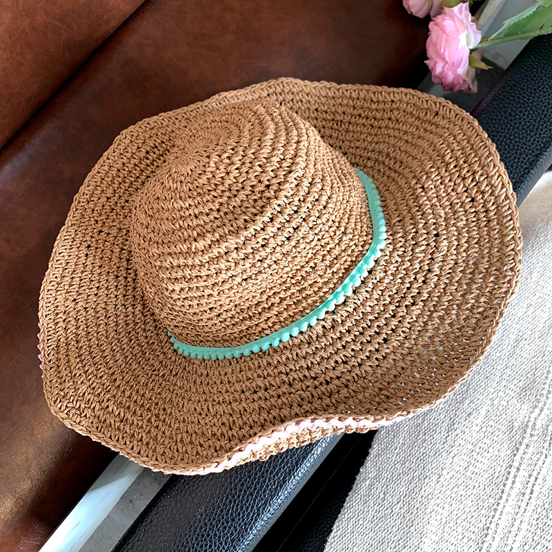 큰 브림 밀짚 모자 여성의 여름 목가적 인 스타일 달콤한 밀짚 어부 모자 해변 햇살스토어 가기