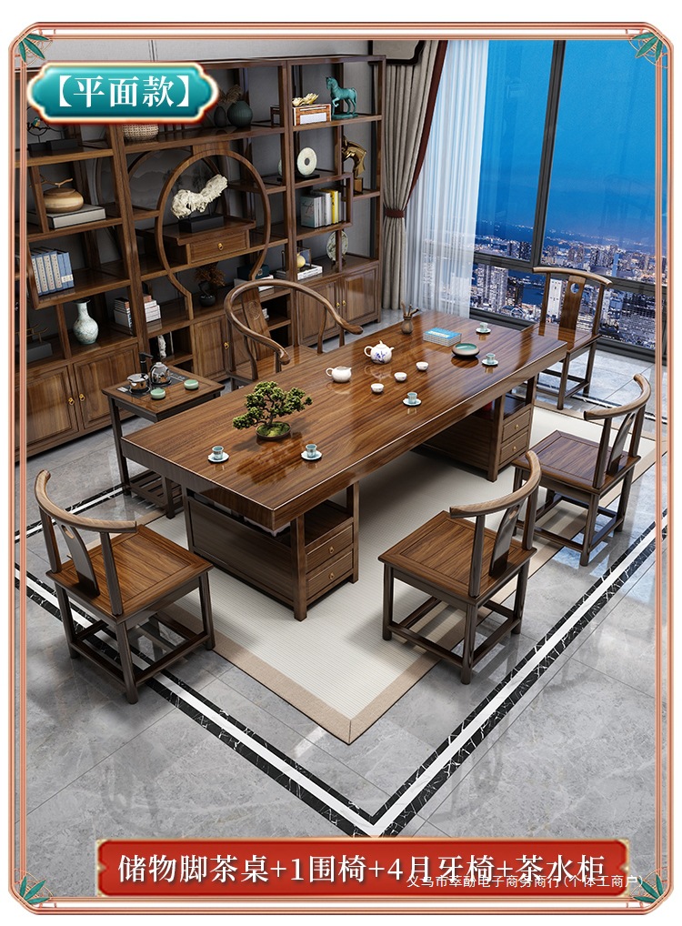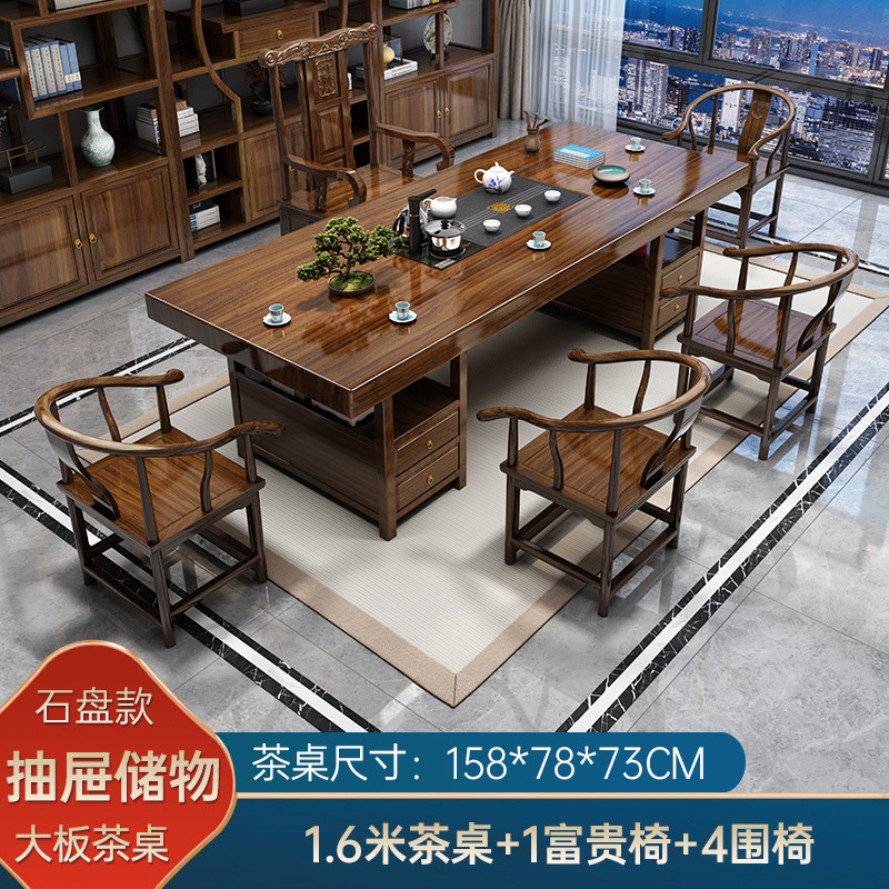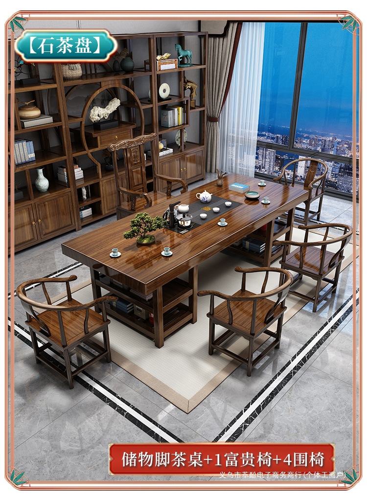 단단한 나무 큰 접시 차 테이블 및 의자 세트 1 대 1 테이블 5 의자 가정용 커피 테이블 차 테이블 차 테이블 주전자 1 대 1 사무실 차 테이블스토어 가기