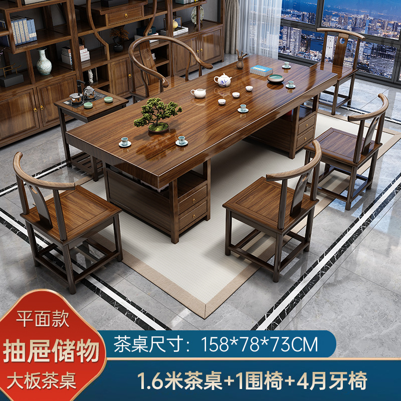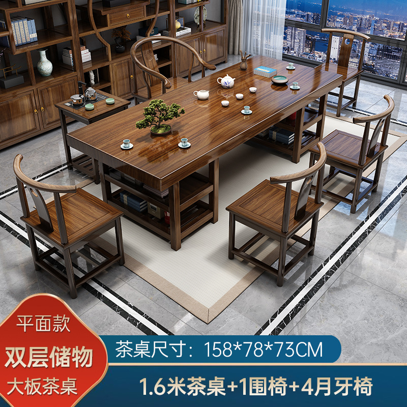 단단한 나무 큰 접시 차 테이블 및 의자 세트 1 대 1 테이블 5 의자 가정용 커피 테이블 차 테이블 차 테이블 주전자 1 대 1 사무실 차 테이블