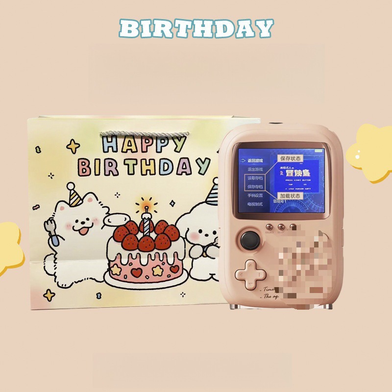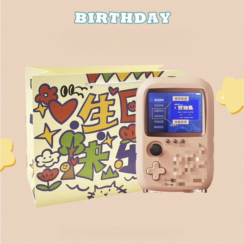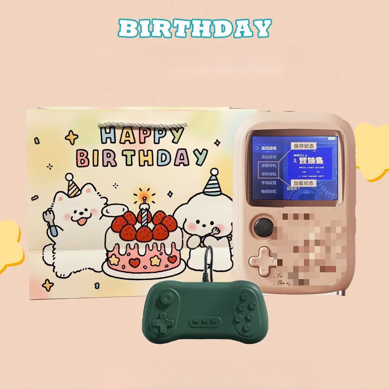 • 생일 축하해요! (선물가방) + 핑크 - 싱글 게임 콘솔 + 무료 고양이 스티커 [10,000개 이상의 게임 내장]