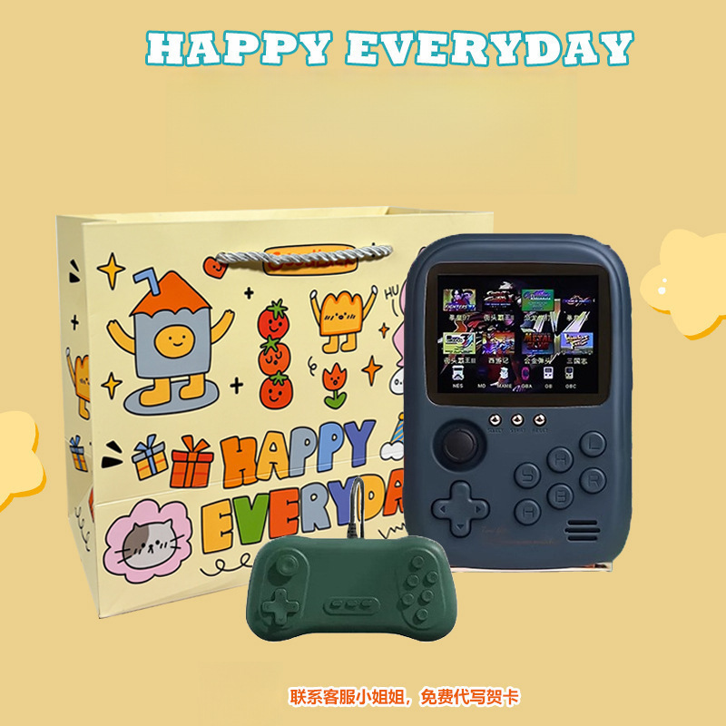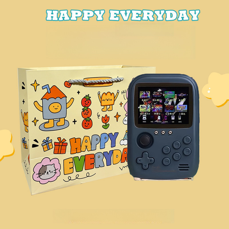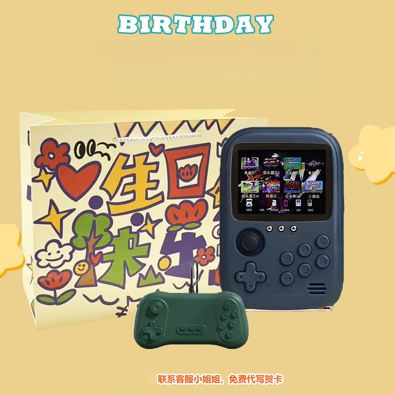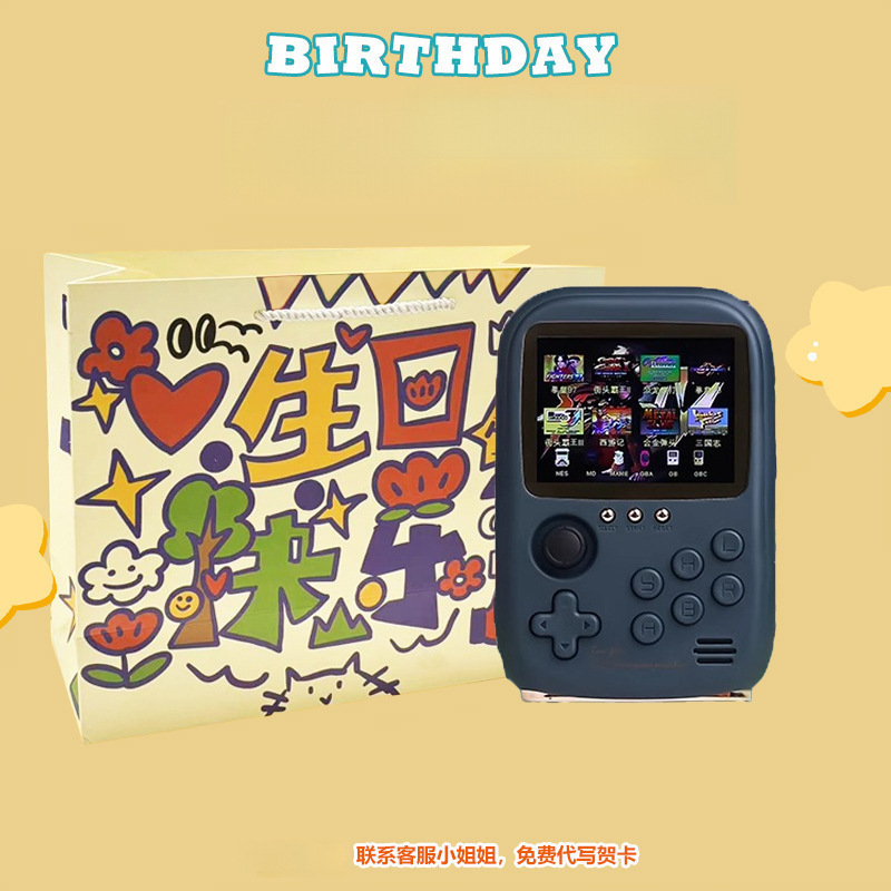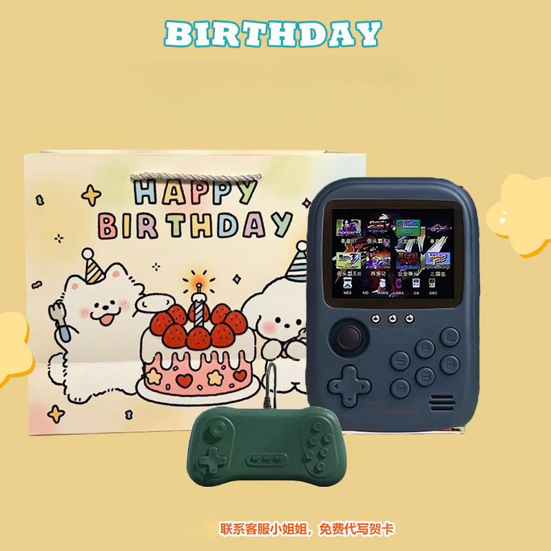 • HAPPY BIRTHDAY(선물 가방) + 진한 파란색 - 싱글 게임 콘솔 + 무료 고양이 스티커 [10,000개 이상의 게임 내장]
