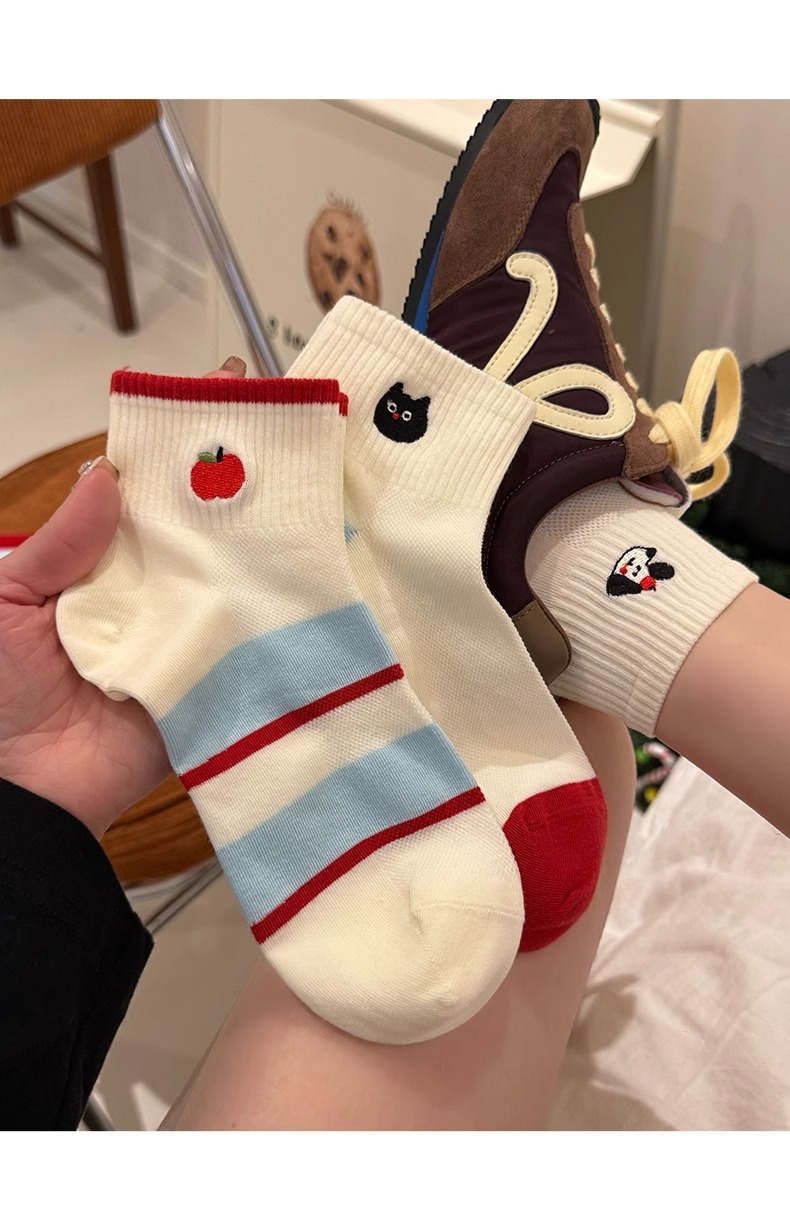 귀여운 흰색 여름 얇은 양말 짧은 여성 스포츠 스타일 뼈없는 로우 컷 보트 양말 땀 흡수 및 통기성 소녀 면 양말스토어 가기