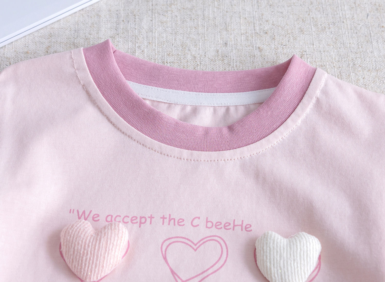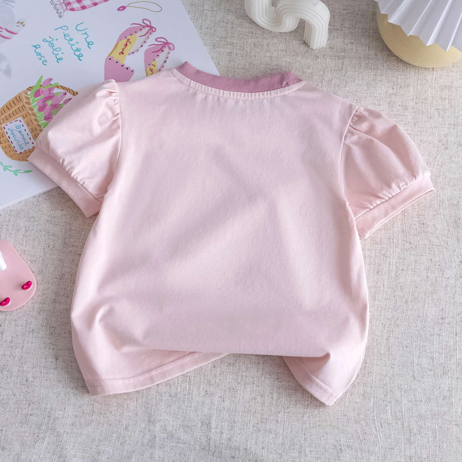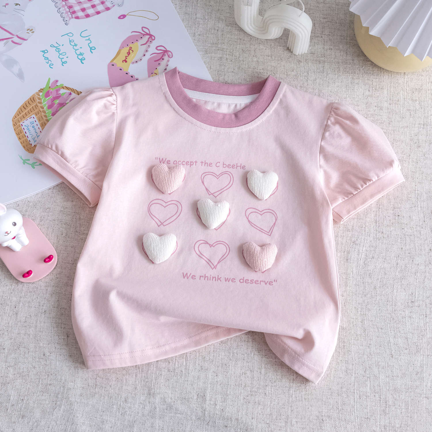 소녀 3 차원 사랑 반팔 티셔츠 서양식 달콤한 프린트 퍼프 슬리브 탑 소녀의 여름 새로운베이스 셔츠스토어 가기