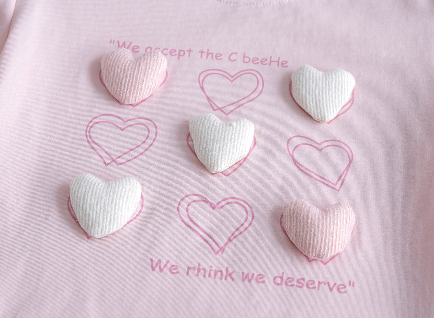 소녀 3 차원 사랑 반팔 티셔츠 서양식 달콤한 프린트 퍼프 슬리브 탑 소녀의 여름 새로운베이스 셔츠