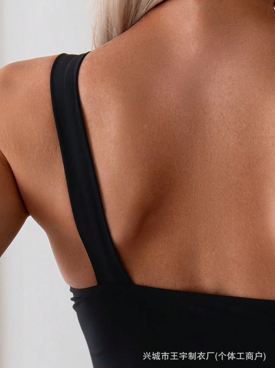 2025 아마존 폭발 유럽 및 미국 국경 원피스 새로운 솔리드 컬러 원피스 불규칙한 원 숄더 섹시한 수영복 여성