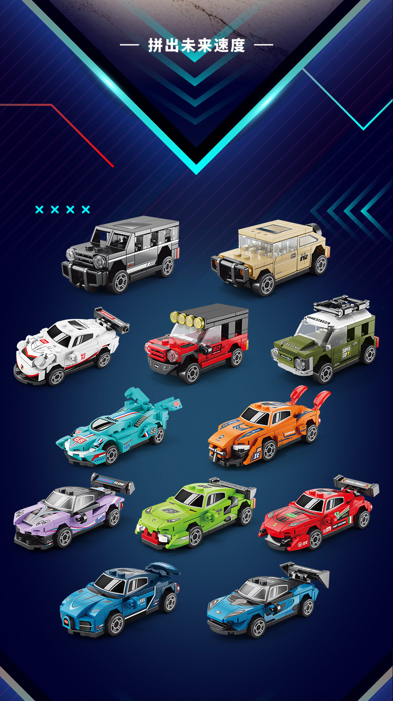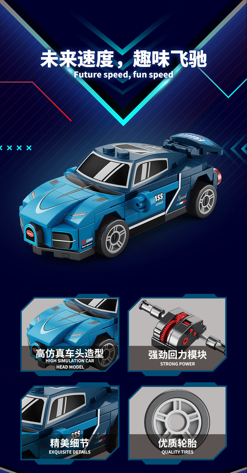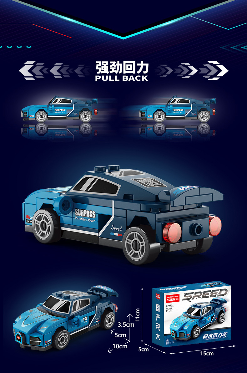 Lele Brothers 9140 4 그리드 백 자동차 경주 럭셔리카 로고 빌딩 블록 어린이와 소년 조립 선물 스톨 장난감스토어 가기