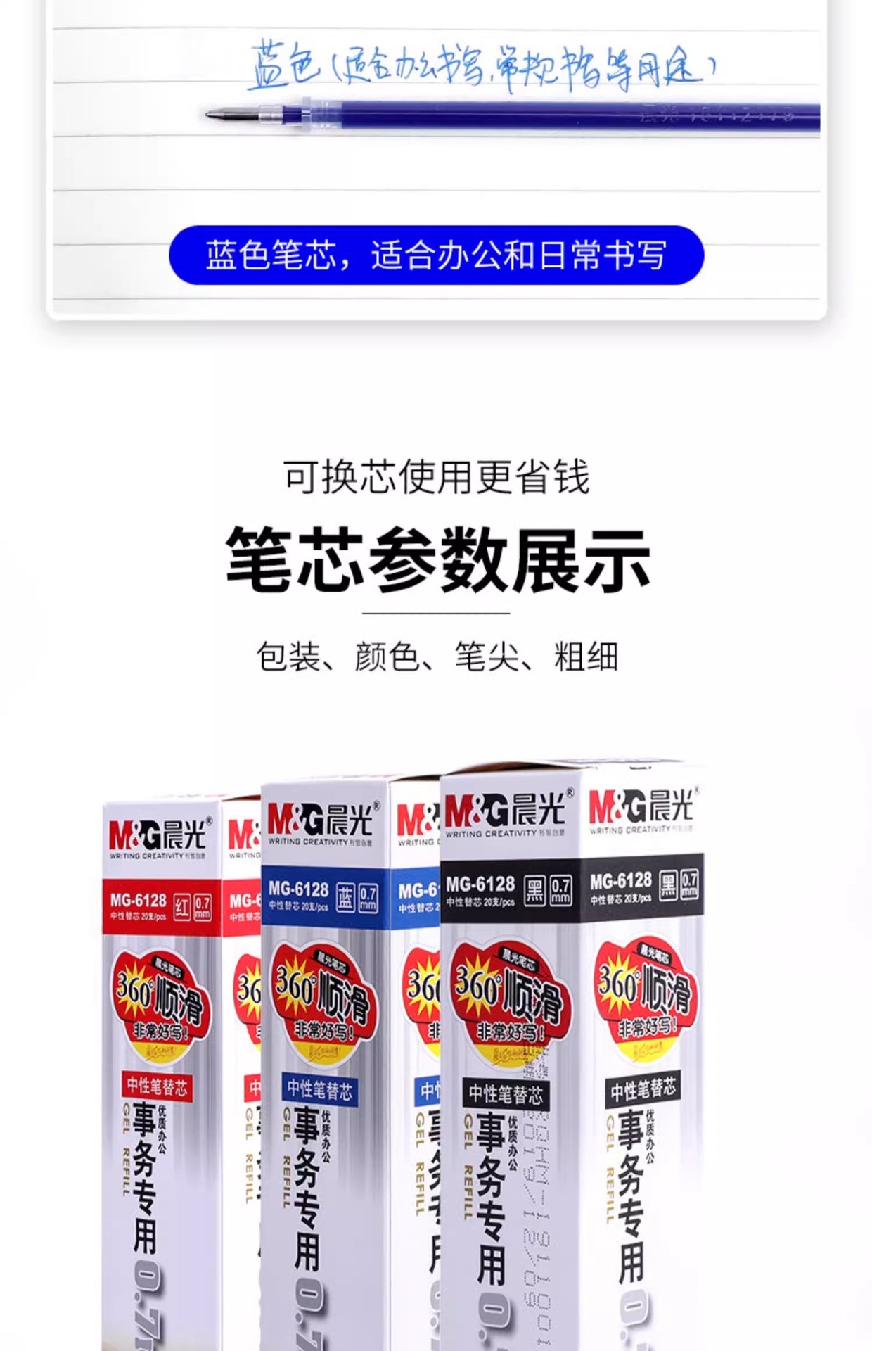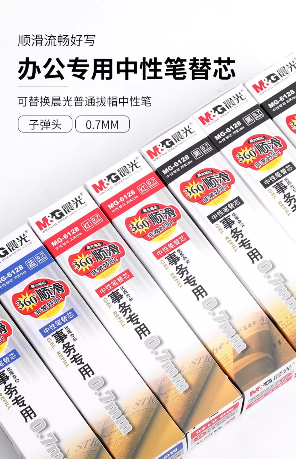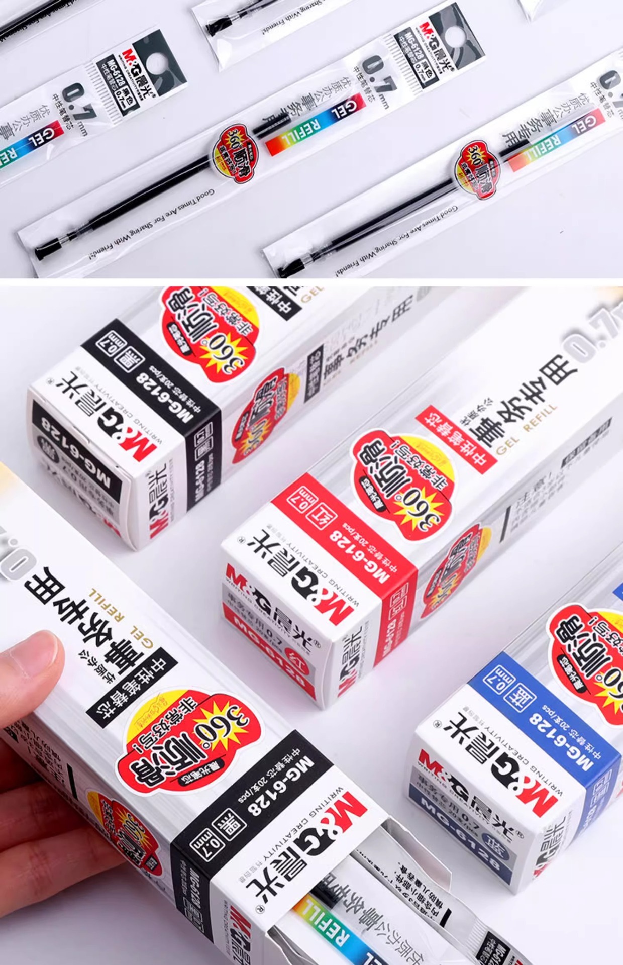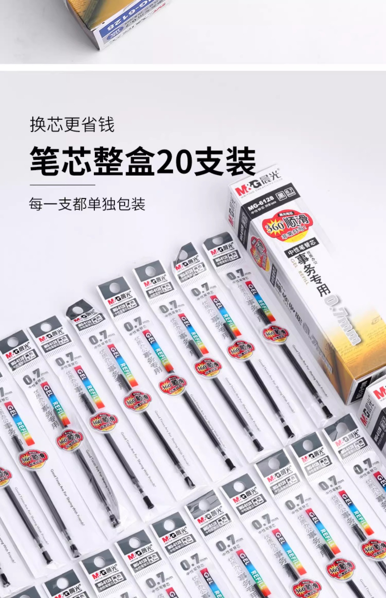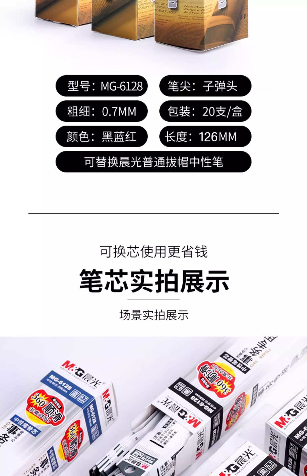 Chenguang 정품 MG-6128 중립 볼펜 캡 리필 0.7mm 총알 사무실 글쓰기 배치