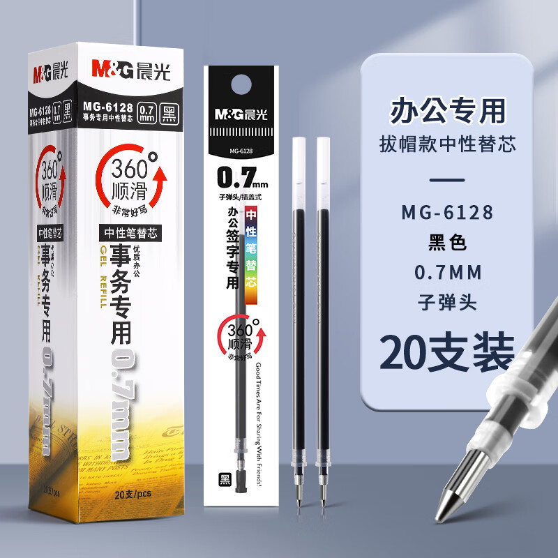 Chenguang 정품 MG-6128 중립 볼펜 캡 리필 0.7mm 총알 사무실 글쓰기 배치스토어 가기