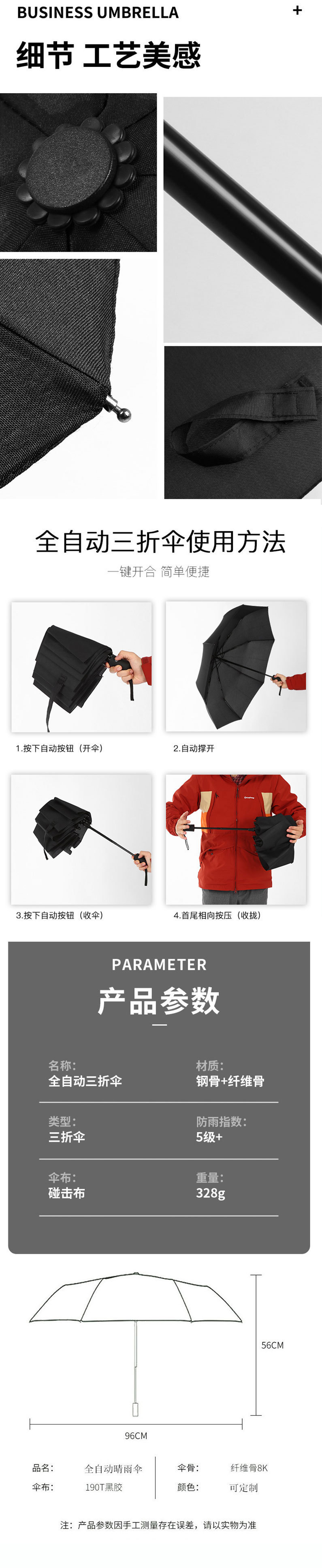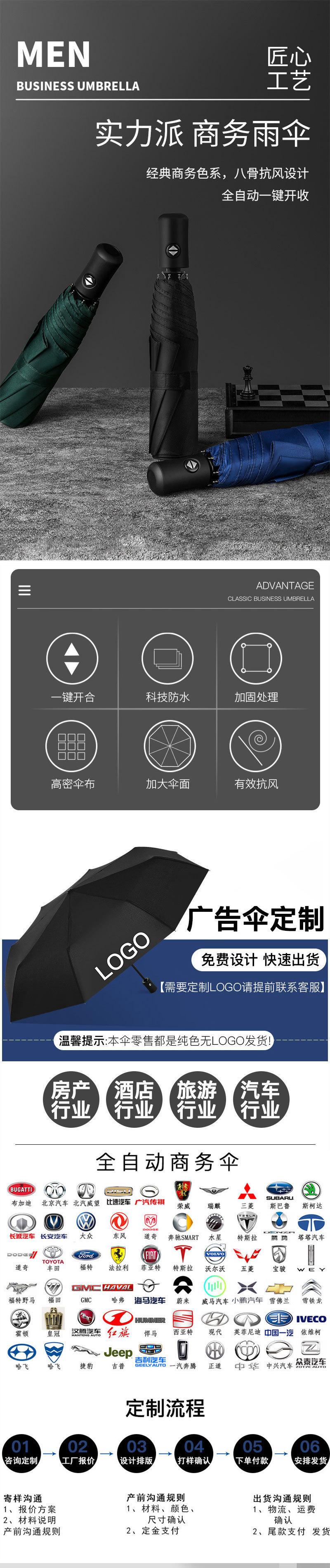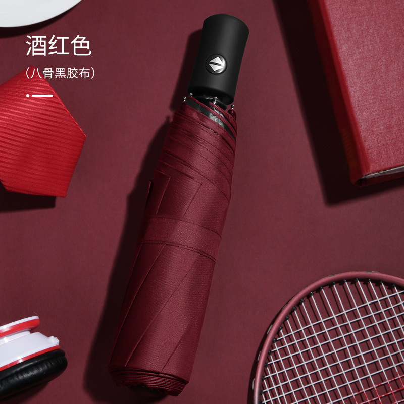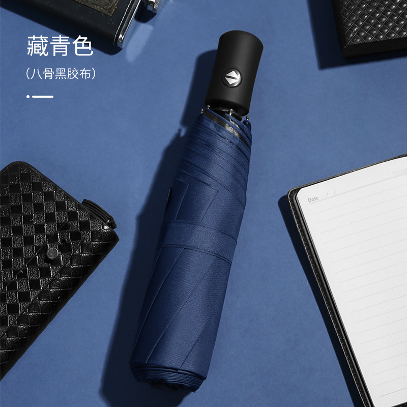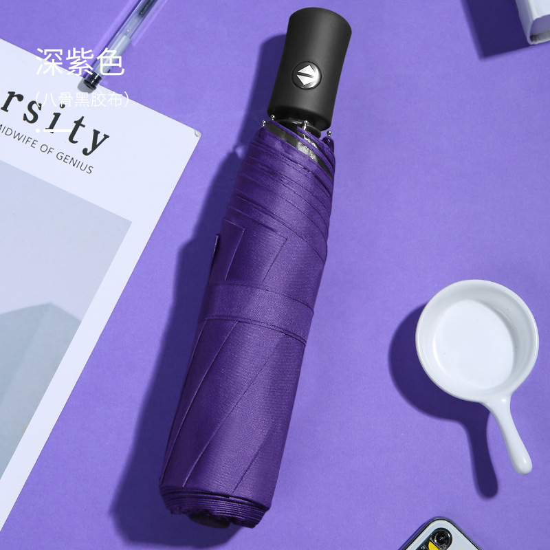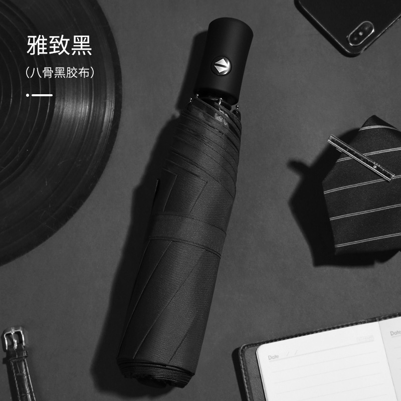 3 배 자동 우산 광고 우산 비즈니스 검은 고무 선 스크린 3 배 접이식 우산 인쇄 가능한 로고