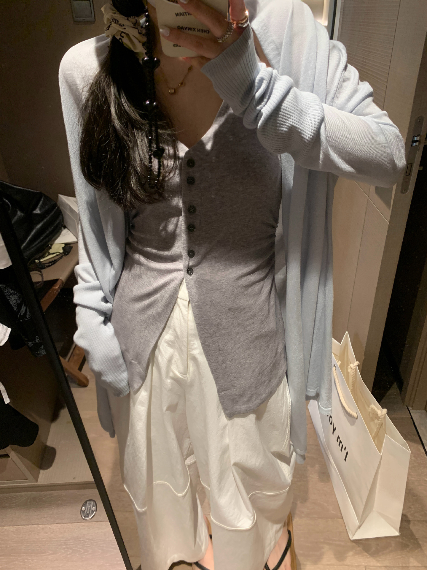 (拍照样衣领口做低了,大货提上去了噢),门襟做了6粒扣