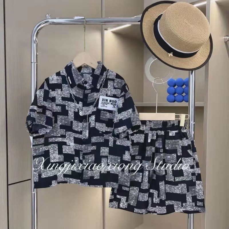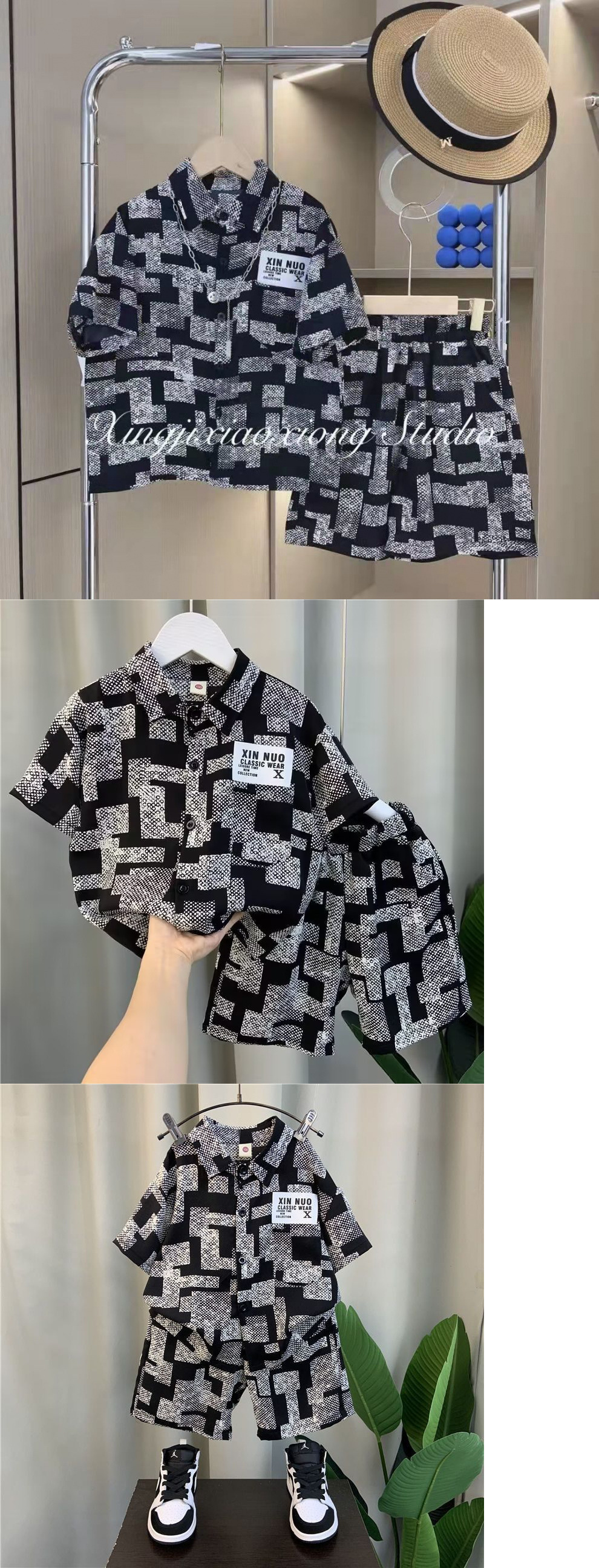 튀긴 거리 어린이 착용 소년 셔츠 세트 2025 새로운 패션 여름 중간 및 큰 어린이 얇은 짧은 소매 쿨 핸섬 아동복 패션스토어 가기