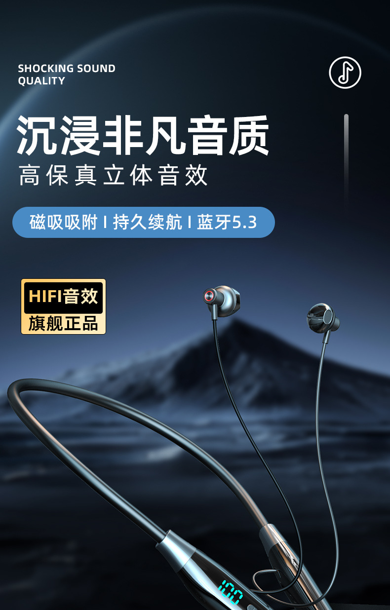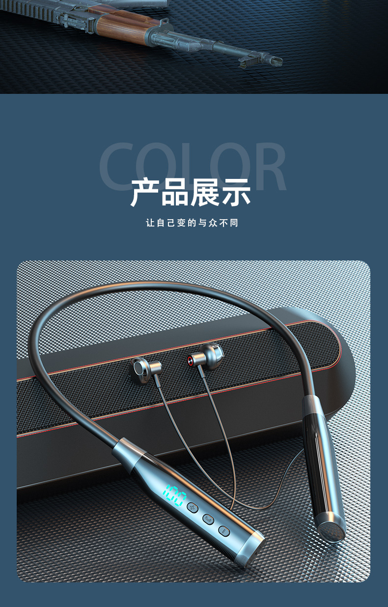C56 크로스보더 A12 목걸이형 무선 디지털 디스플레이 TF 카드 슬롯 대용량 배터리 블루투스 이어폰 블루투스 5.4스토어 가기