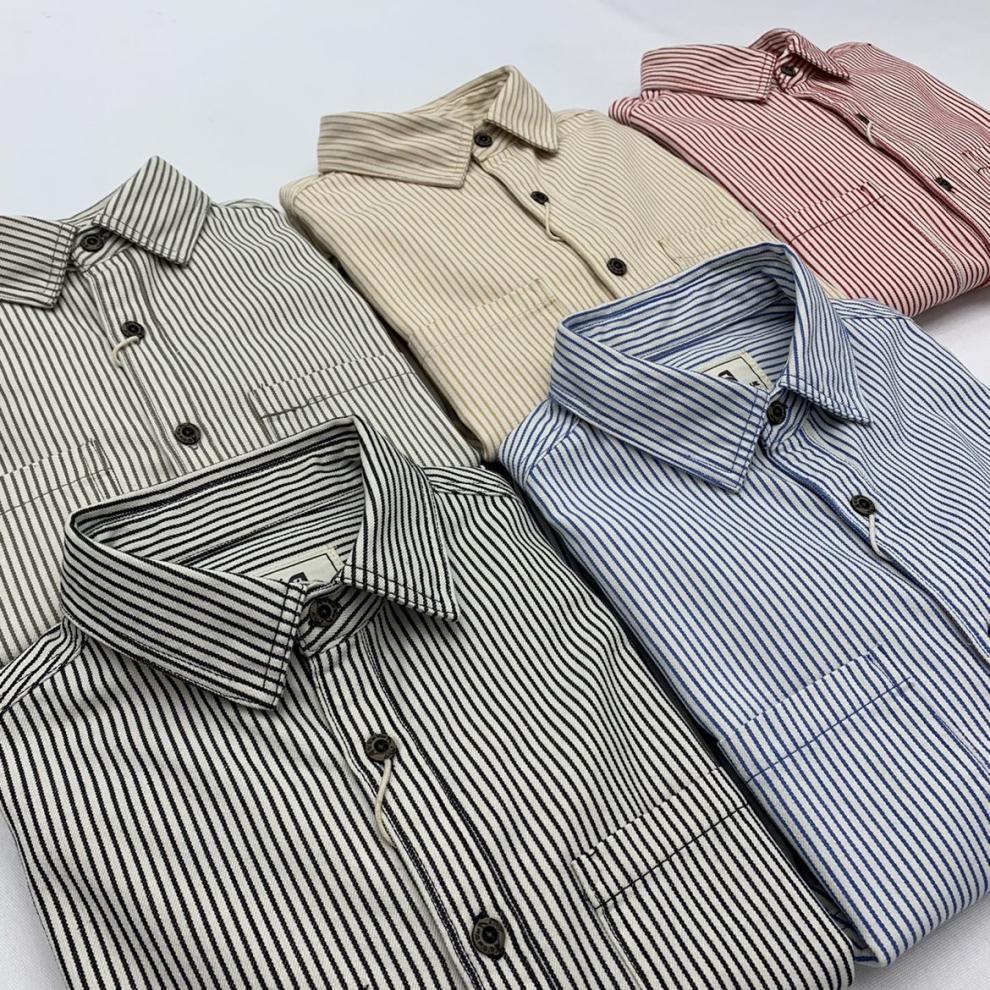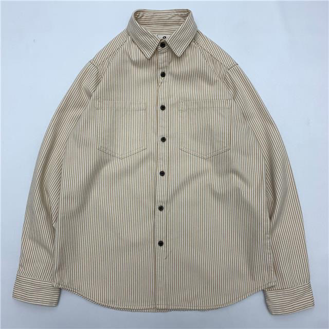 일본식 아미 카키 일본식 레트로 청소년 툴링 셔츠 트렌디 브랜드 다채로운 줄무늬 느슨한 긴 소매 셔츠스토어 가기