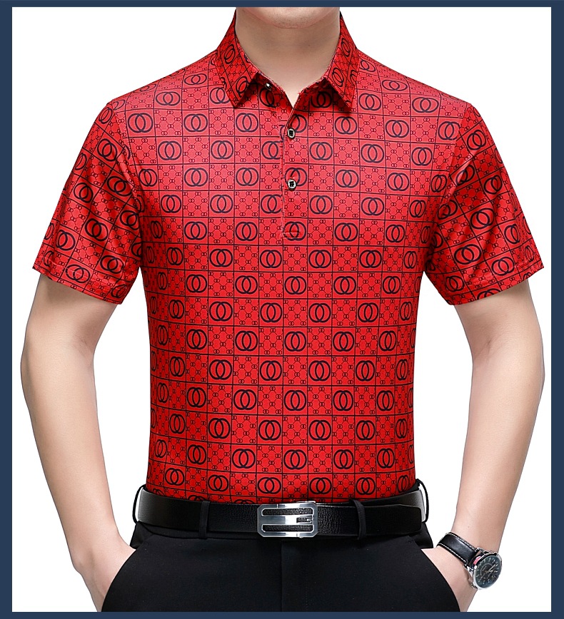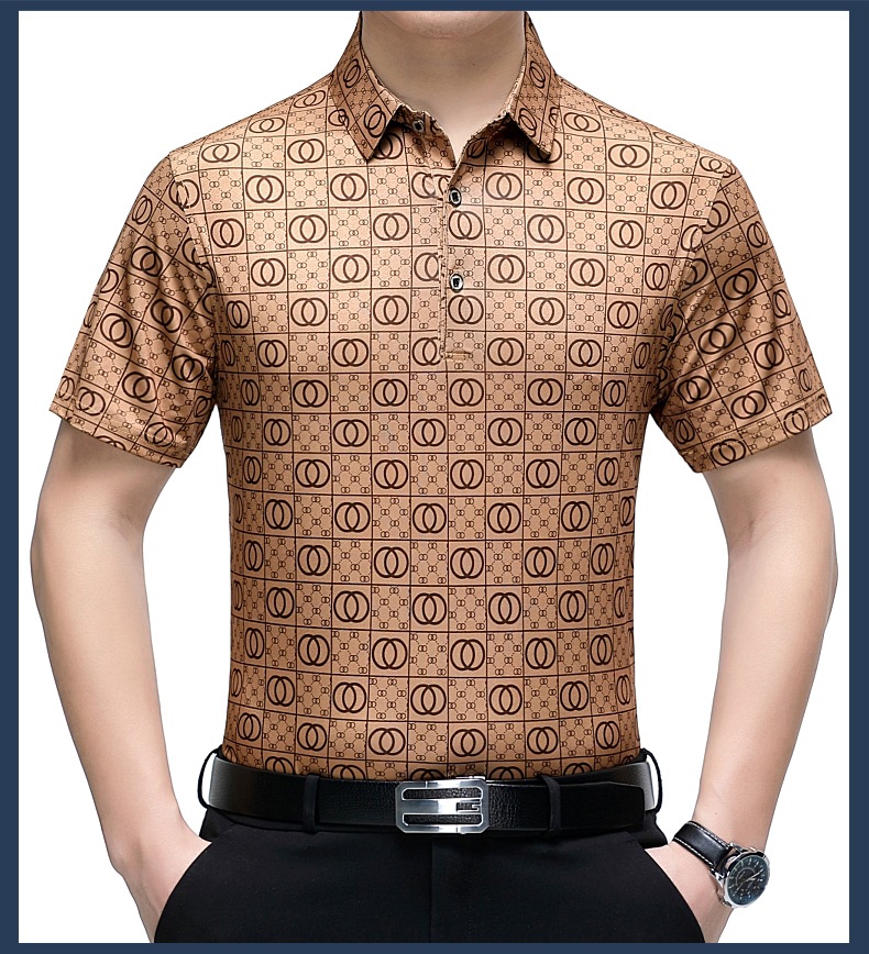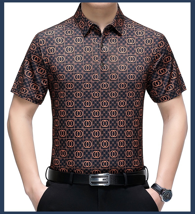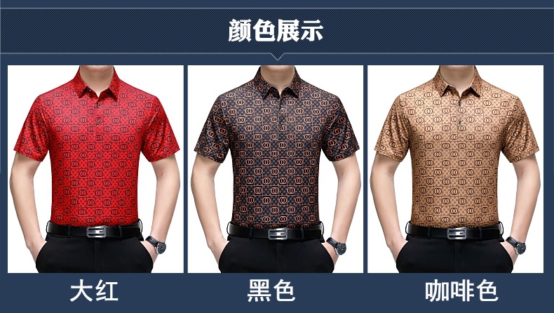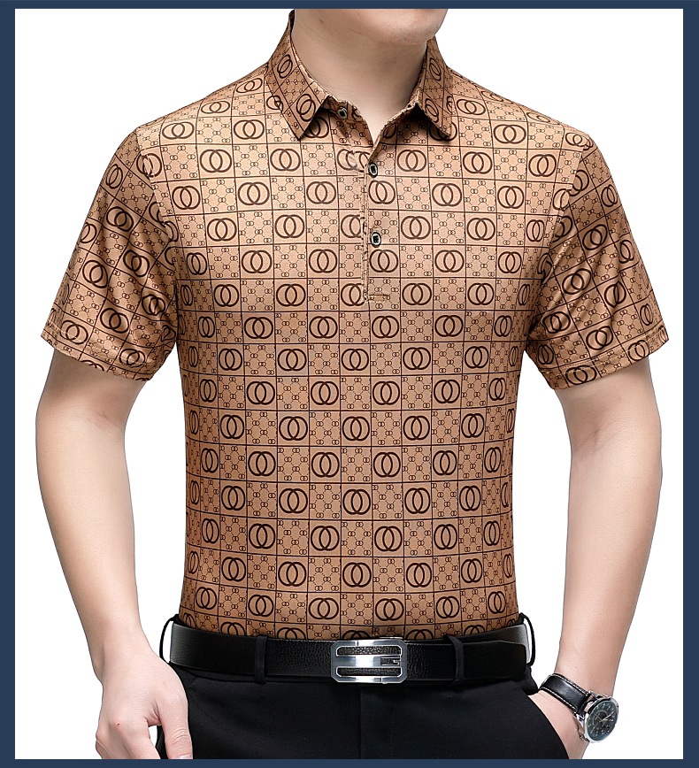 카운터 고급 뽕나무 실크 젊고 중년 비 다림질 남성 티셔츠 반팔 비즈니스 패션 플러스 사이즈 통기성 남성 폴로 셔츠스토어 가기