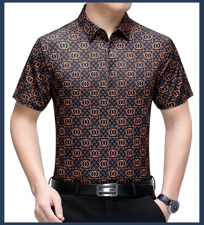 카운터 고급 뽕나무 실크 젊고 중년 비 다림질 남성 티셔츠 반팔 비즈니스 패션 플러스 사이즈 통기성 남성 폴로 셔츠