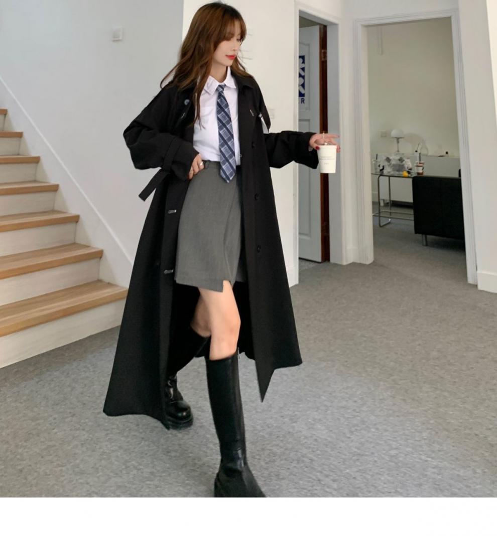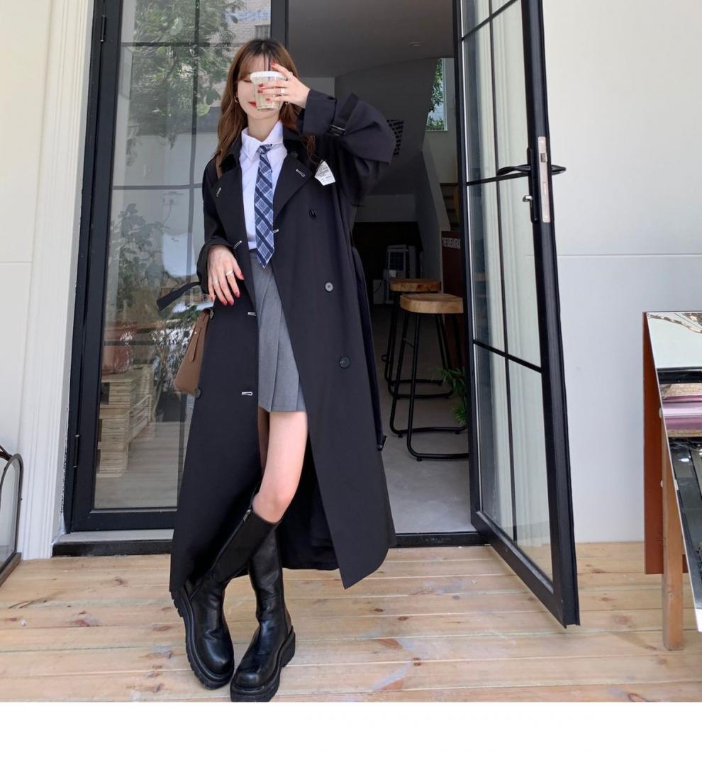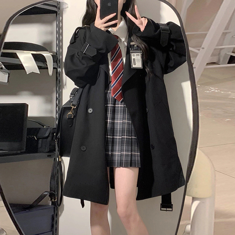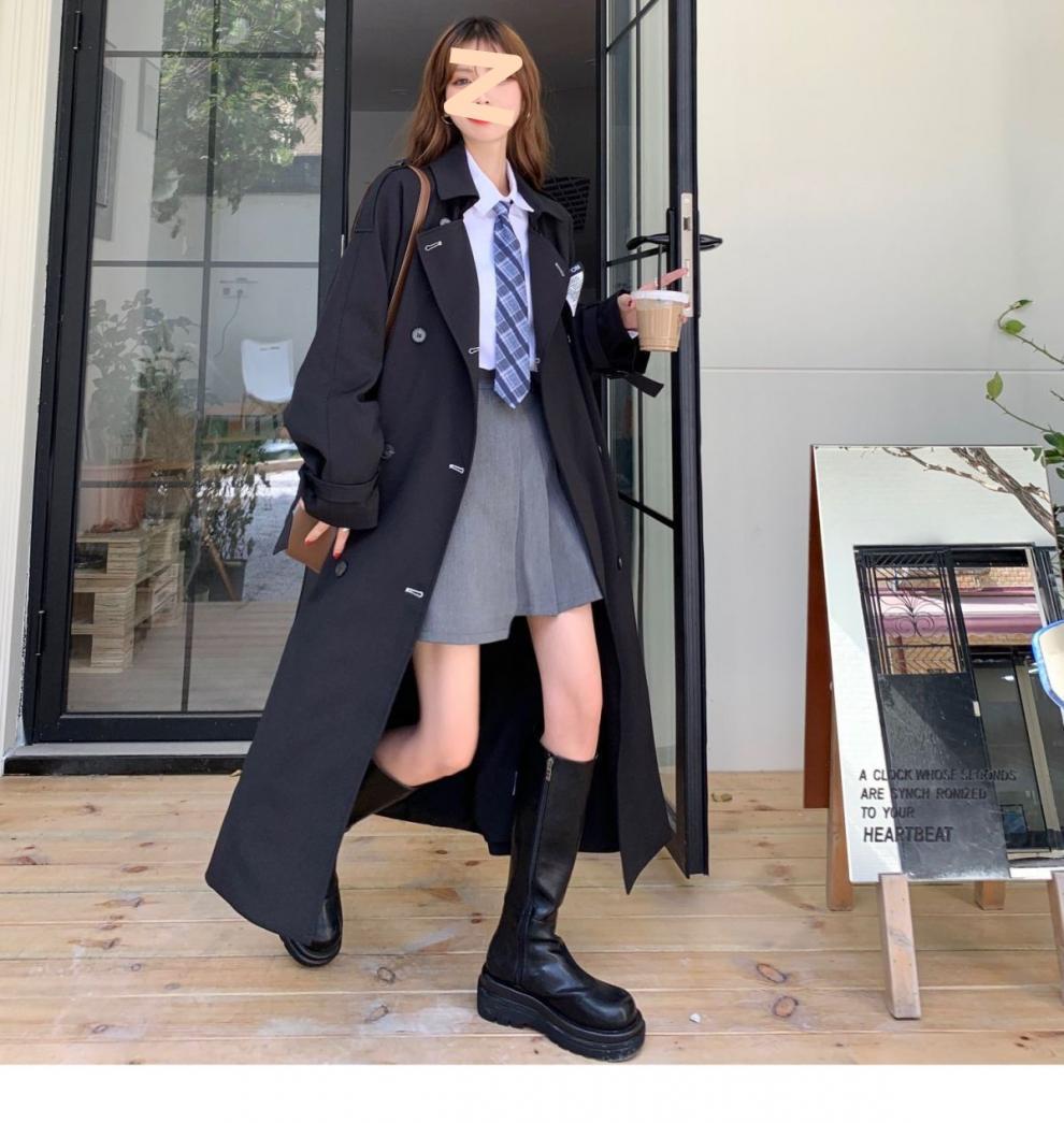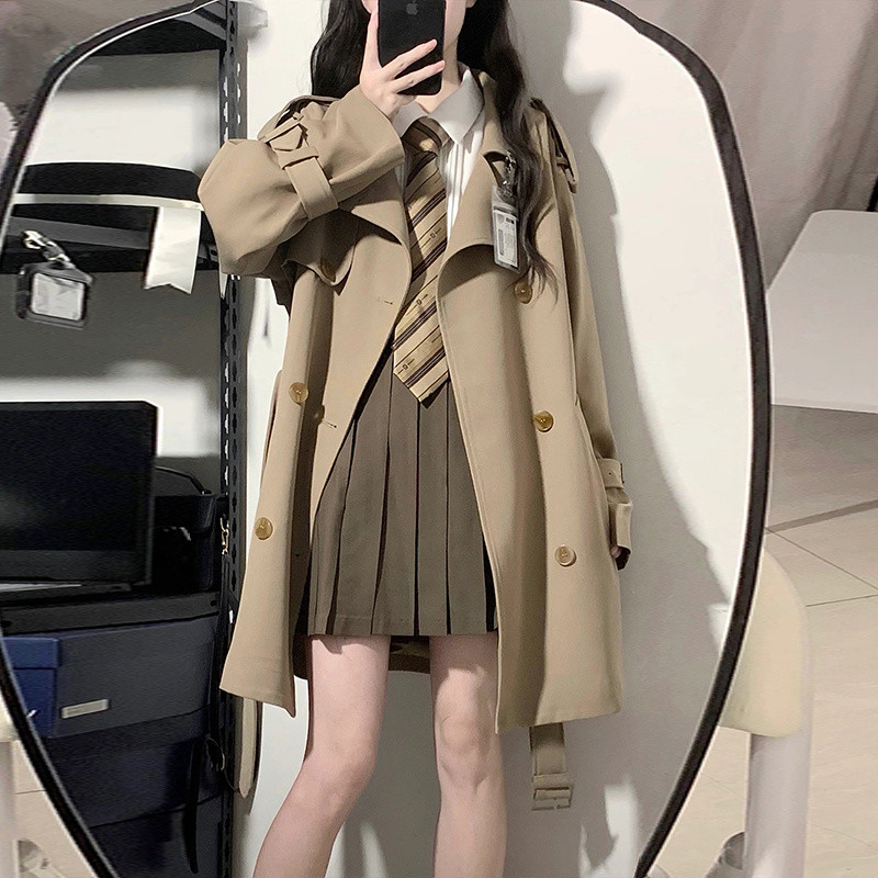 A6C2024 봄과 가을 새로운 중간 길이의 무릎 외투 여성용 한국식 하이 엔드 칼리지 스타일 학생 코트스토어 가기