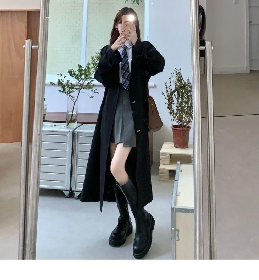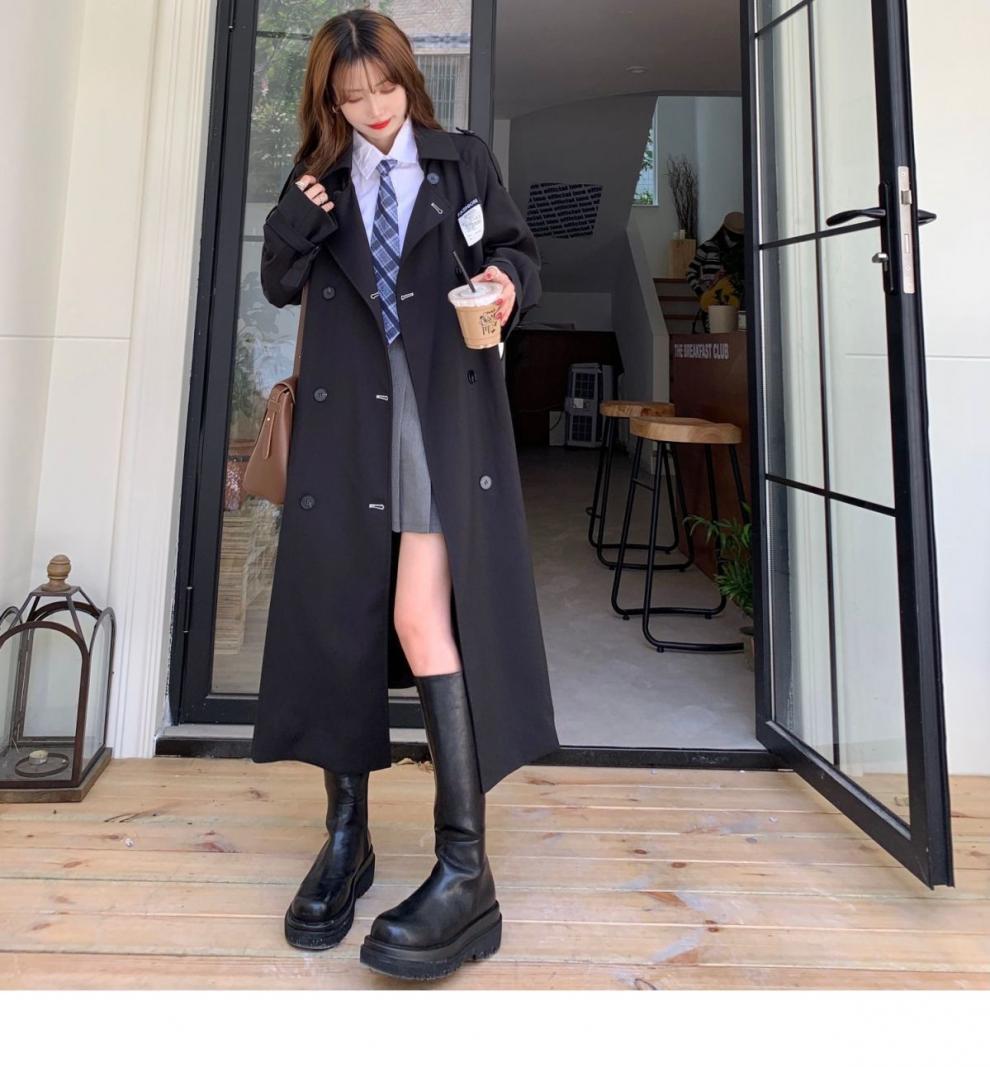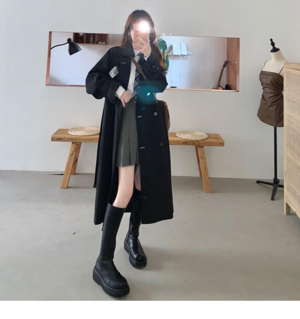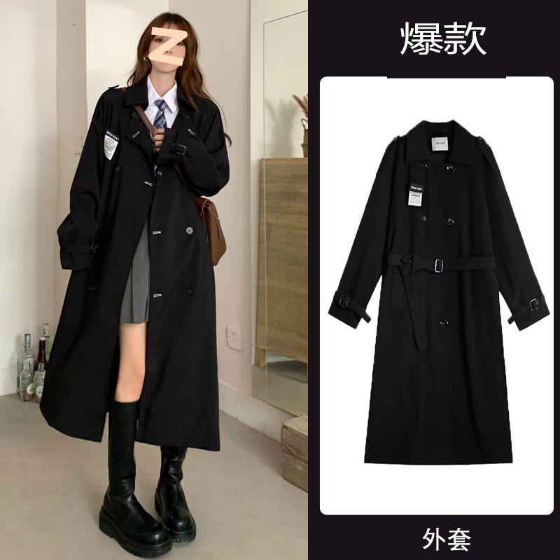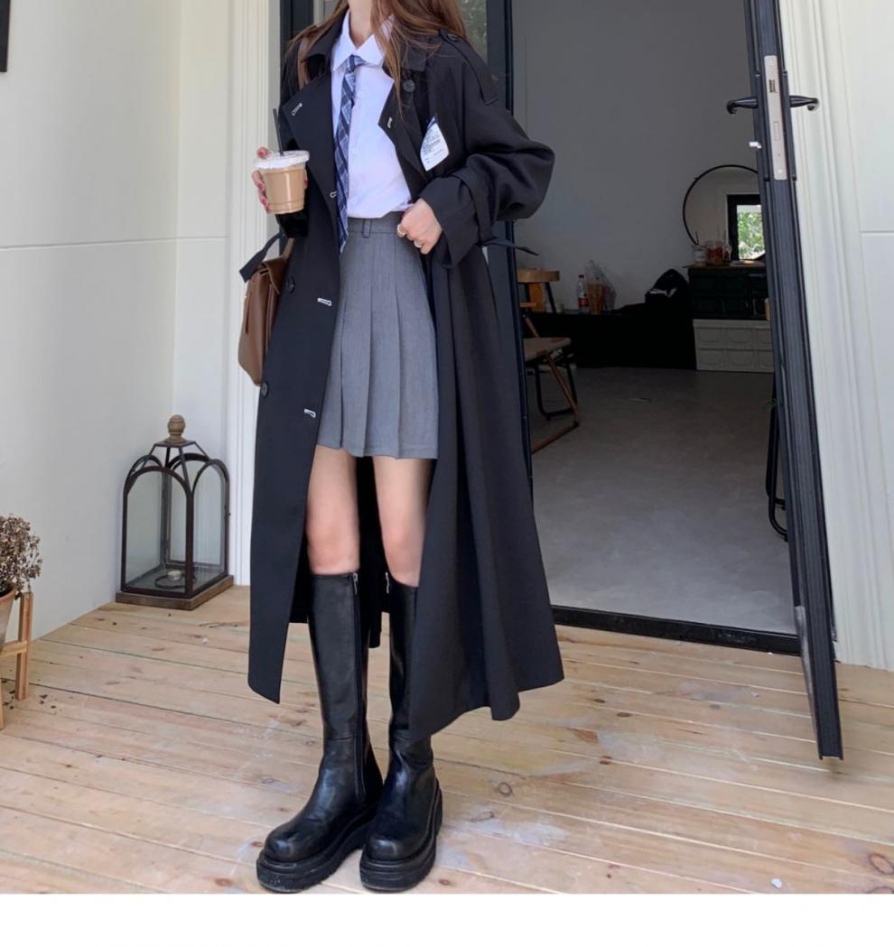 A6C2024 봄과 가을 새로운 중간 길이의 무릎 외투 여성용 한국식 하이 엔드 칼리지 스타일 학생 코트스토어 가기