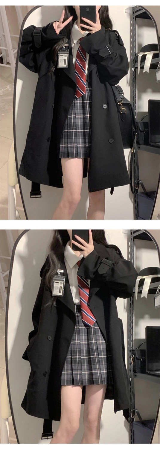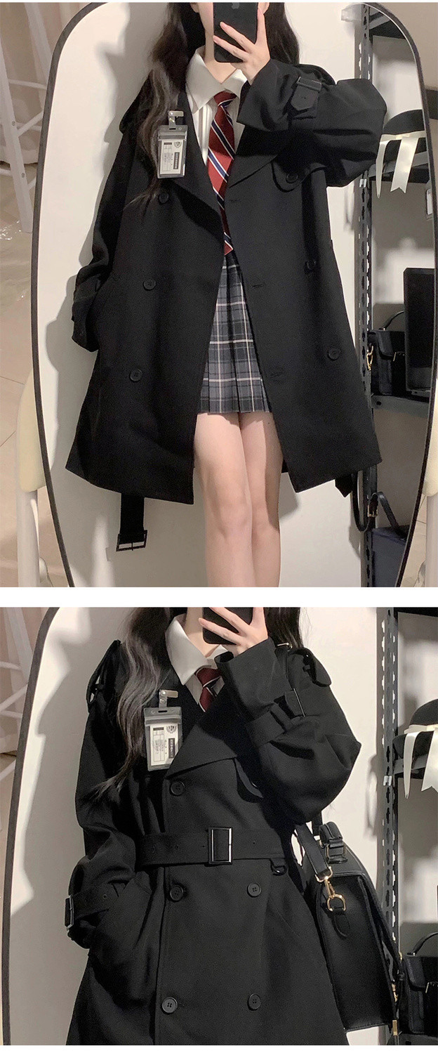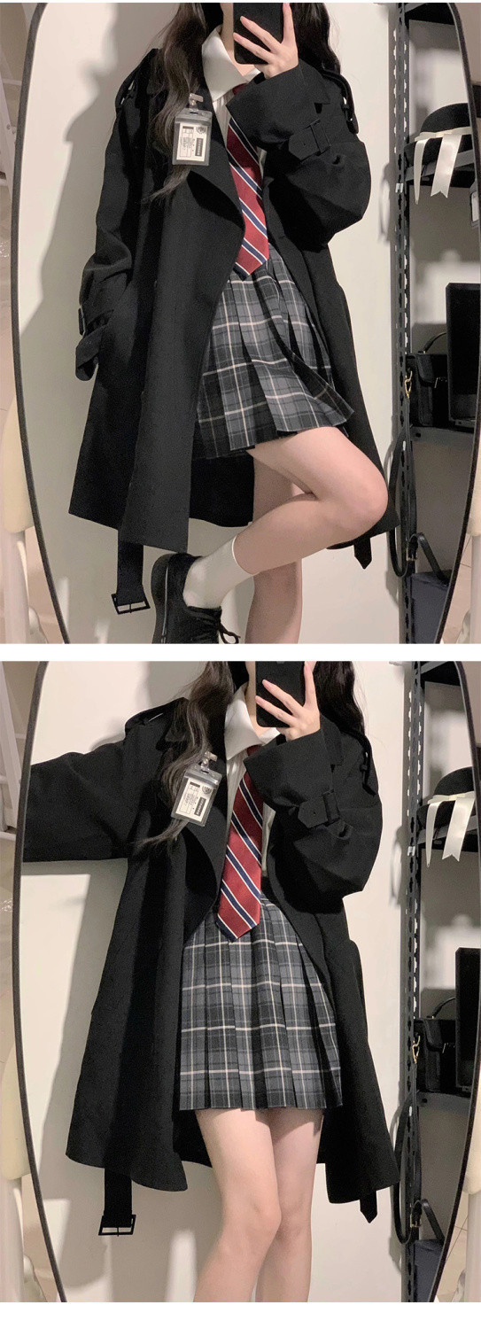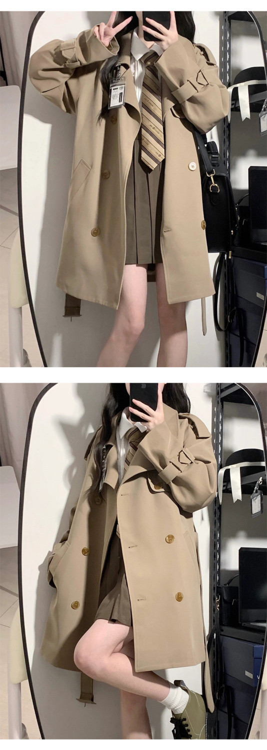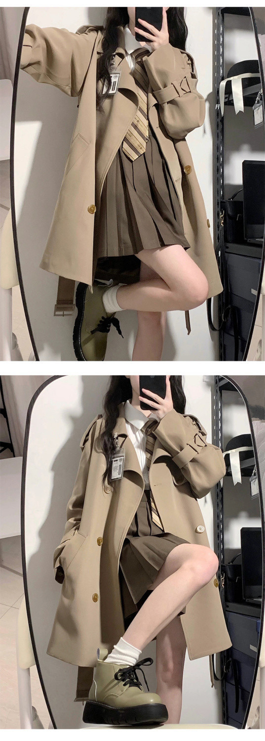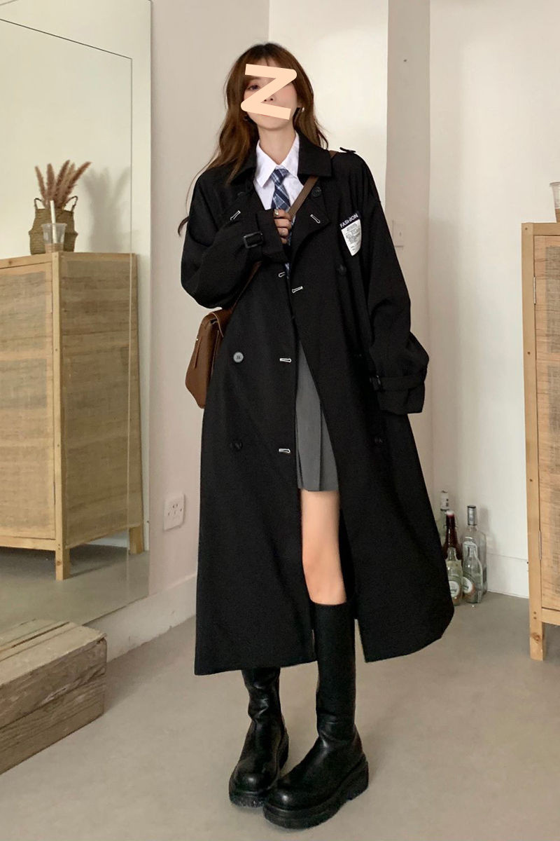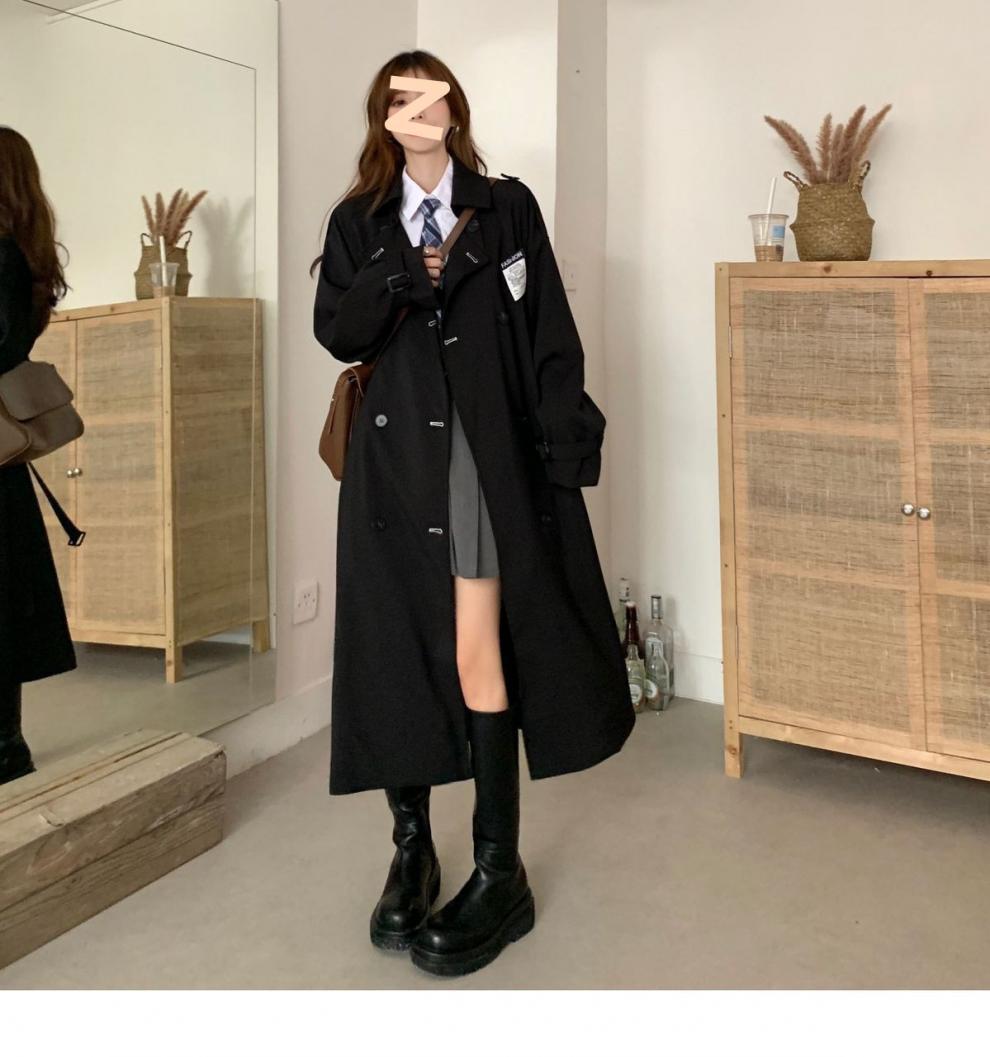 A6C2024 봄과 가을 새로운 중간 길이의 무릎 외투 여성용 한국식 하이 엔드 칼리지 스타일 학생 코트