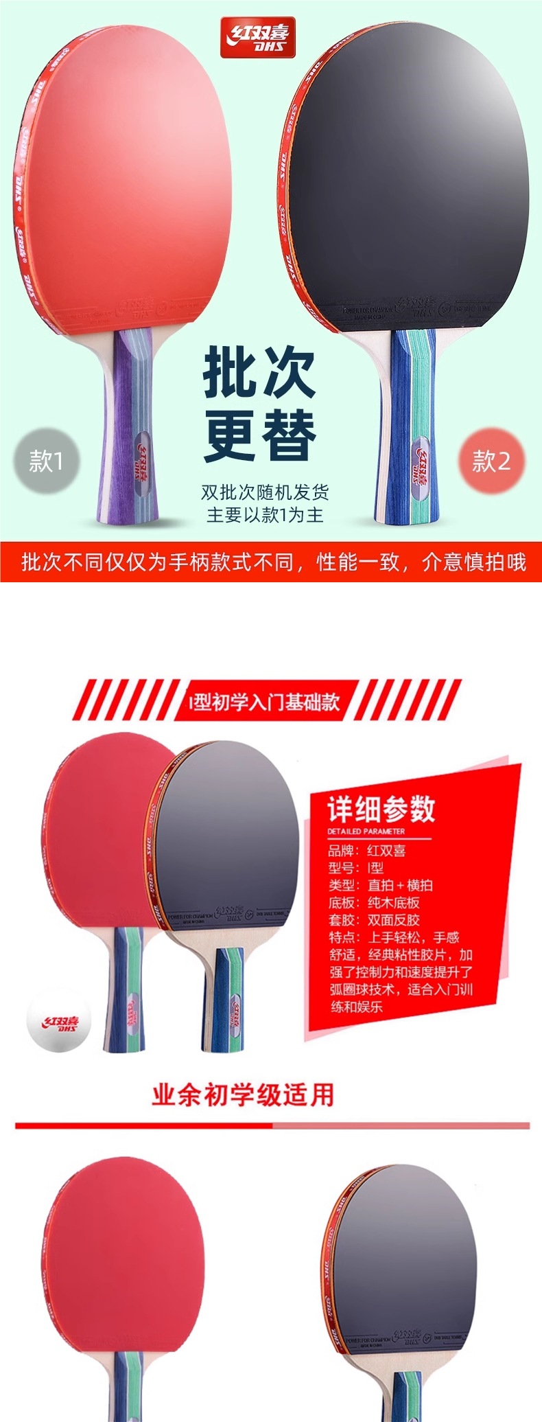 Hongshuangxi 탁구 라켓 더블 라켓 2 정품 플래그십 스토어 초중등 학생 어린이 초보자 프로 시즌 마을스토어 가기