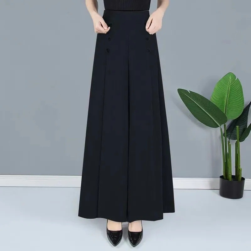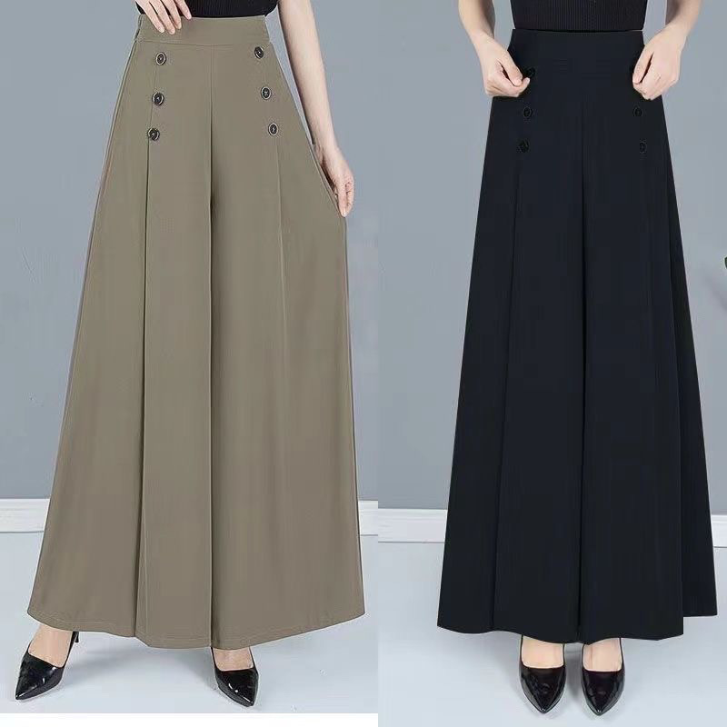 여름 아이스 실크 얇은 캐주얼 컬롯 여성의 중년 어머니 바지 하이 엔드 슬리밍 우아한 와이드 레그 바지