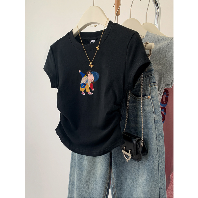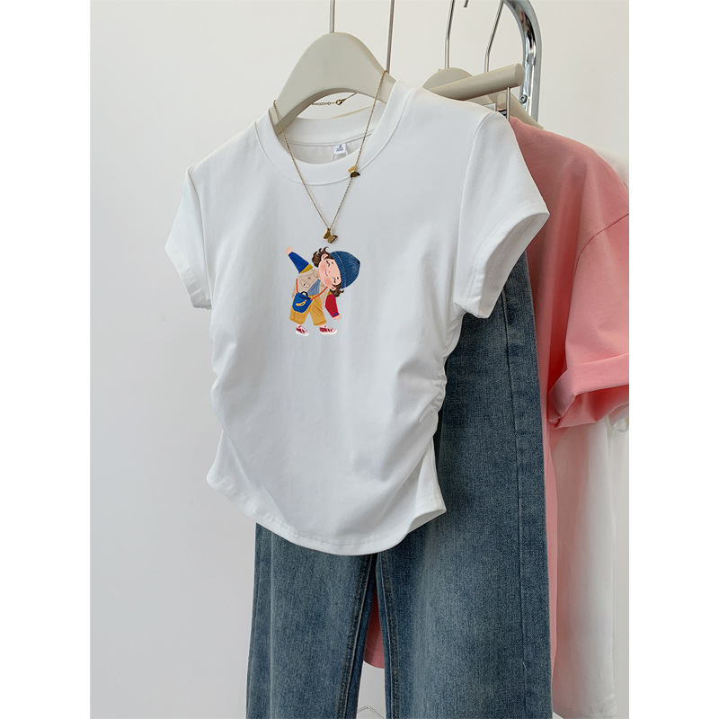 한국식 흰색 반팔 티셔츠 여성 여름 디자인 센스 니쉬 하이 엔드 인테리어 Chic 탑 얇은베이스 셔츠스토어 가기