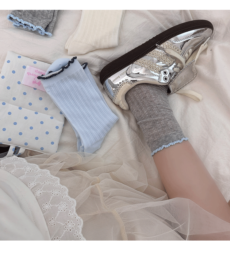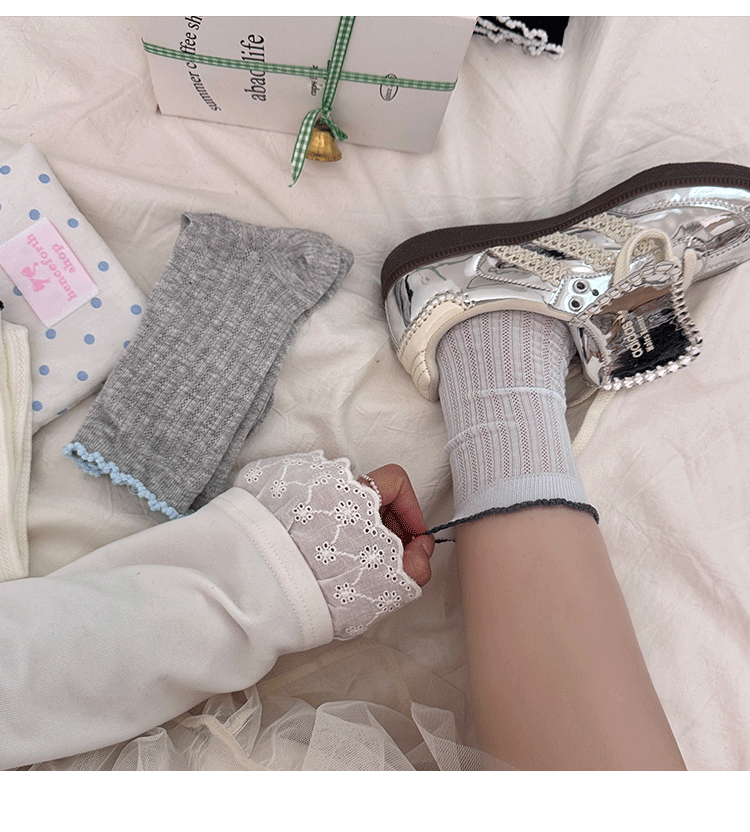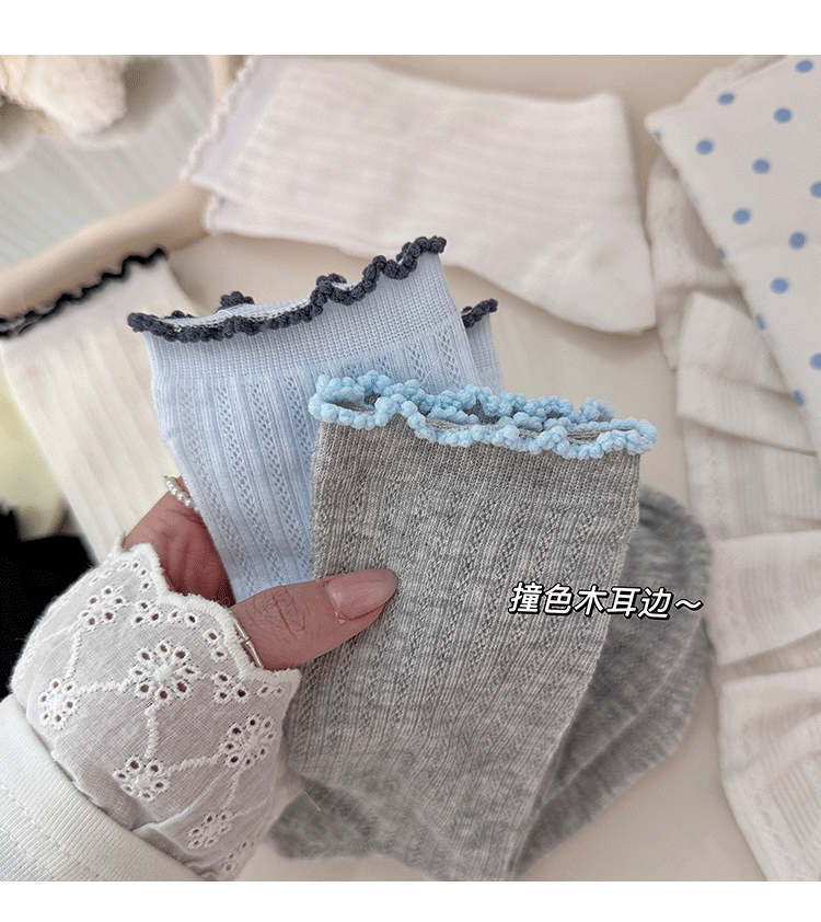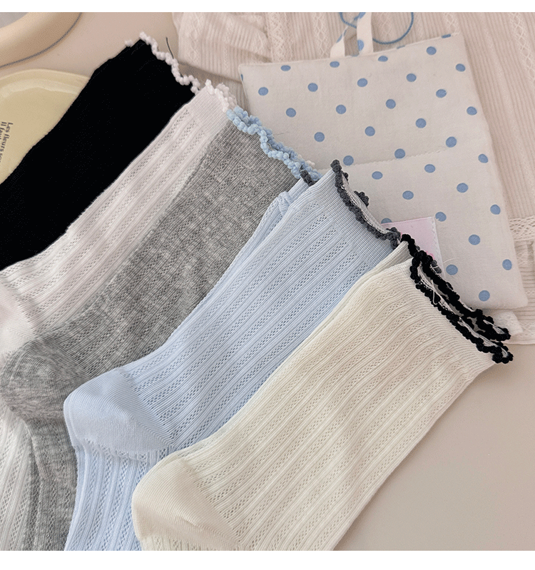 명암 컬러 레이스 메쉬 뼈없는 양말 여성 미드 튜브 양말 봄과 여름 새로운 얇은 통기성 한국면 더미 양말 여성스토어 가기
