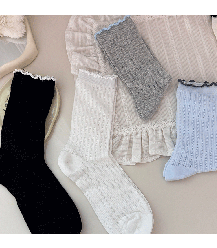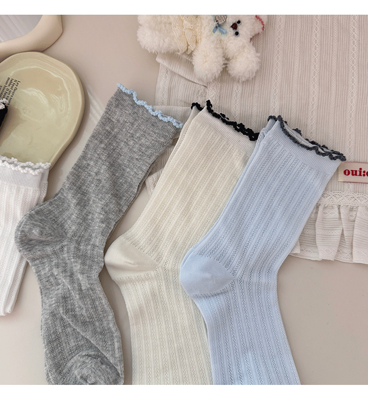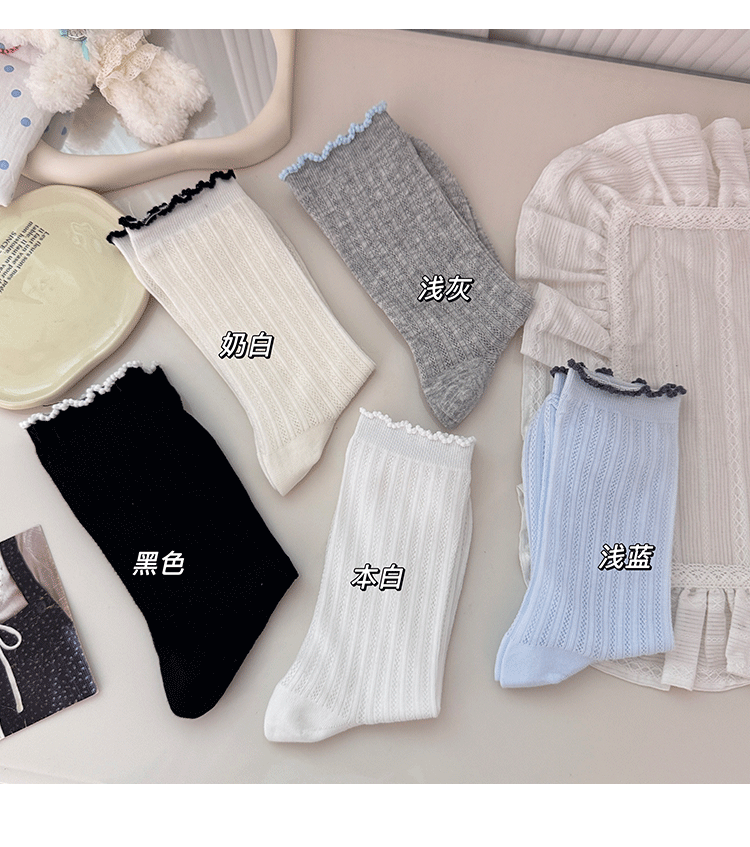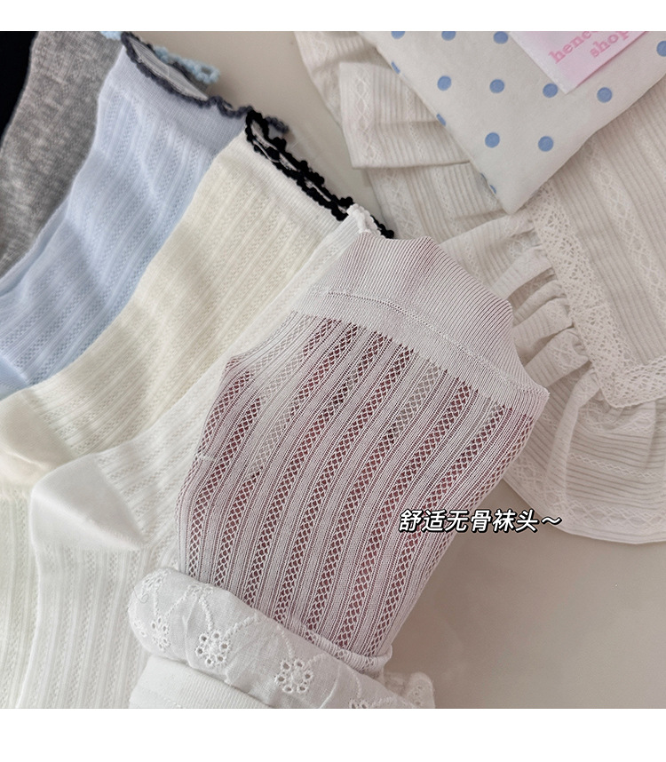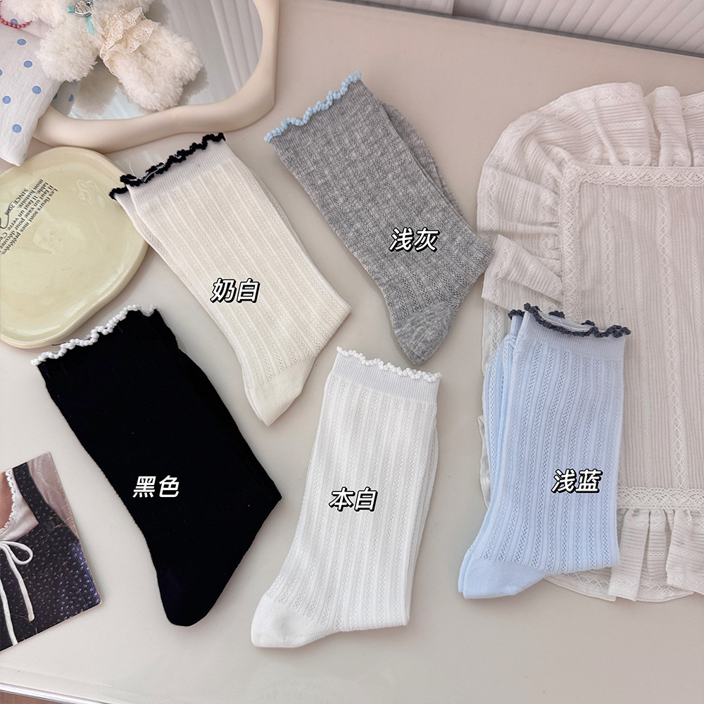명암 컬러 레이스 메쉬 뼈없는 양말 여성 미드 튜브 양말 봄과 여름 새로운 얇은 통기성 한국면 더미 양말 여성
