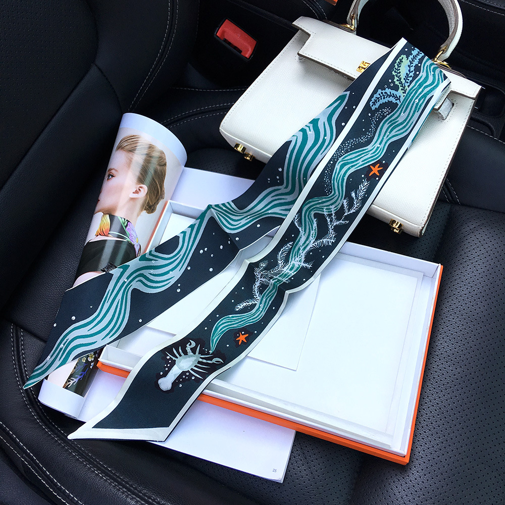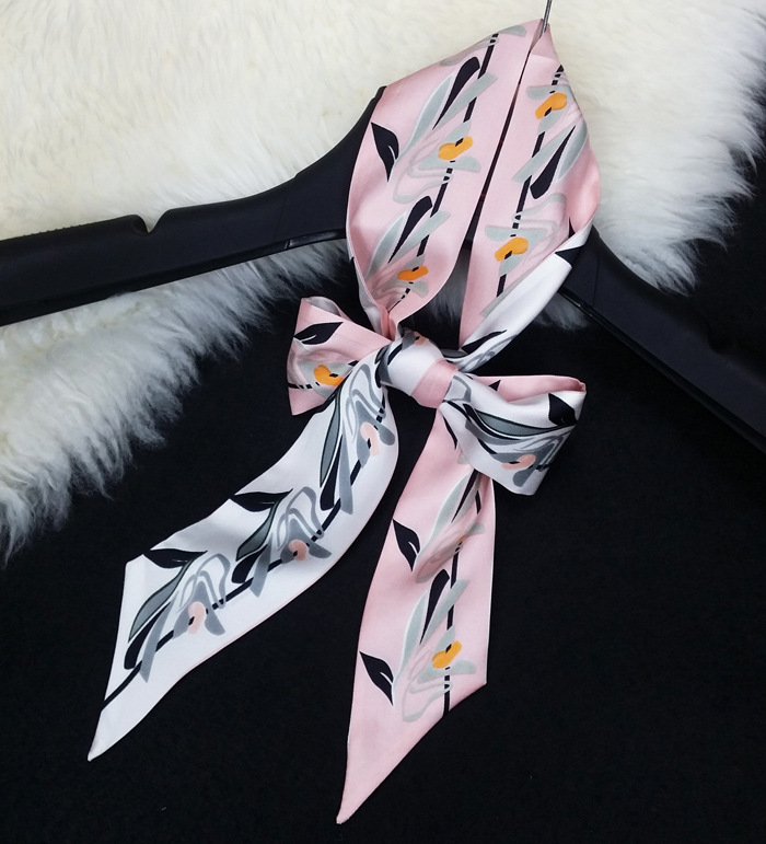 북유럽 스타일 실크 핑크 핸들 스카프 스카프 넥타이 가방 액세서리 티윌 리본 올 매치 스카프