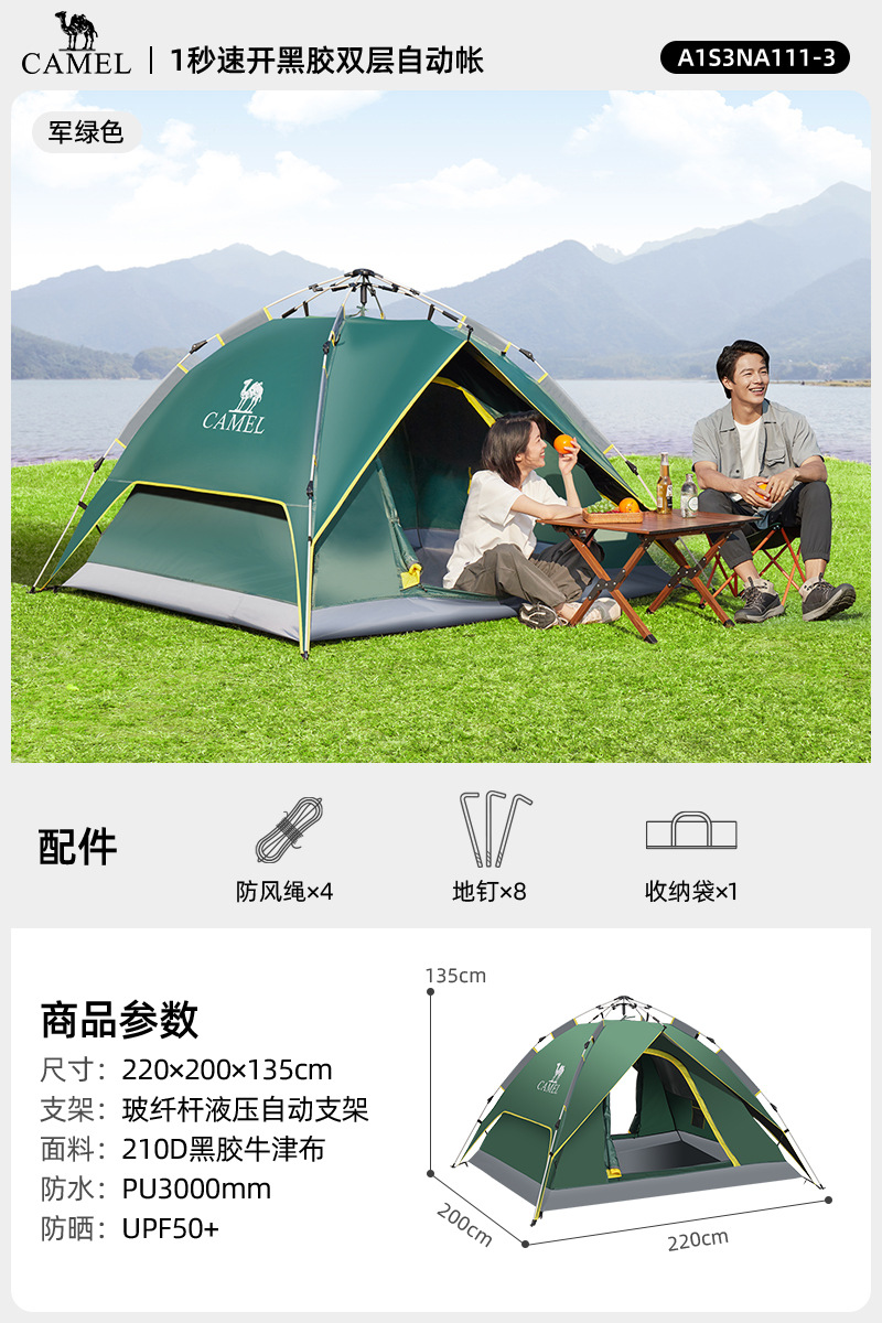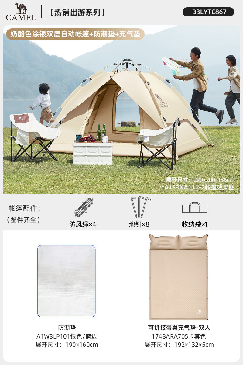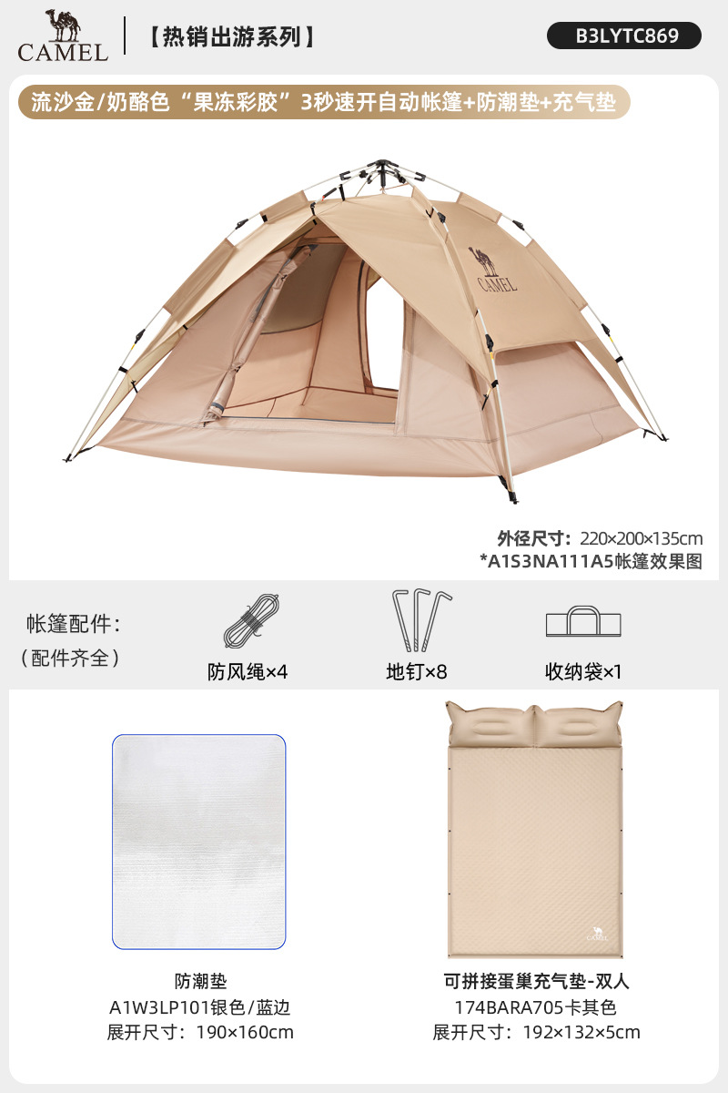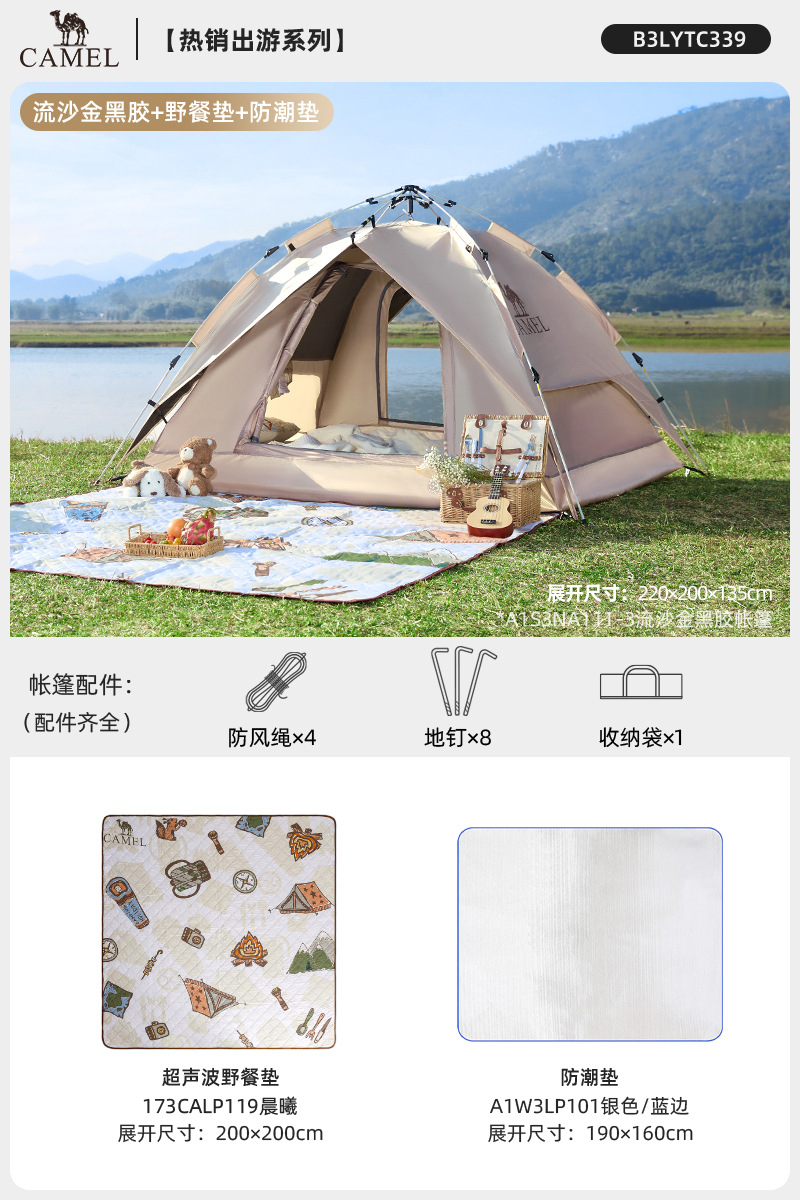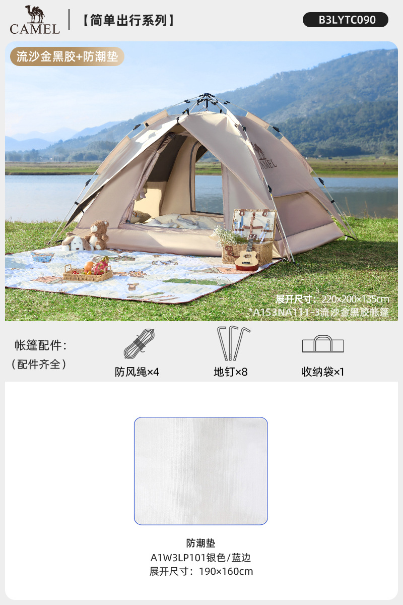 카멜 텐트 야외 접이식 편리한 캠핑 캠핑 하룻밤 자동 블랙 접착제 비치 실내 두꺼운 계절 마을스토어 가기
